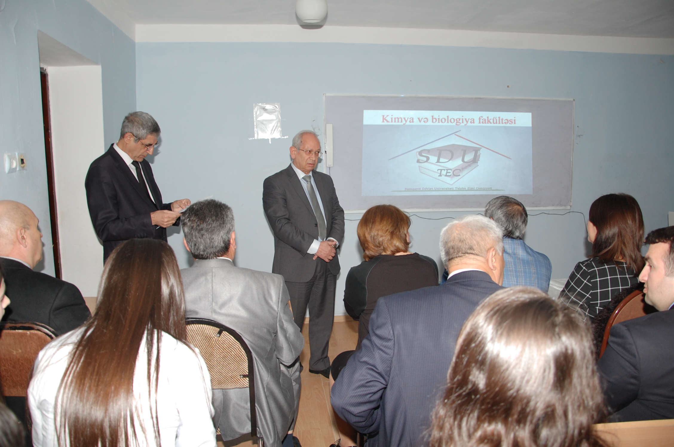 Aprelin 25-də Tələbə Elmi Cəmiyyətinin fakültələr üzrə növbəti elmi seminarı  “Kimya və biologiya” fakültəsində keçirildi.Seminarda universitet TEC-in elmi rəhbəri dos. İslam Paşayev, Elm və innovasiyalar üzrə prorektor, prof. Ramazan Məmmədov, dekan dos. Mahal Muradov, Elmi hissənin müdiri dos. Anar Namazov, müvafiq kafedra müdirləri və profesor-müəllim heyəti, o cümlədən digər fakültələrin TEC üzvləri də iştirak etdilər.  Seminarı universitet TEC-in elmi rəhbəri dos. İslam Paşayev açıq elan etdi və  universitetin rektoru Elxan Hüseynovun salamlarını seminar iştirakçılarına çatdırdı. Bildirdi ki, bu seminarları keçirməkdə əsas məqsədimiz tələbələrin elmi potensialını, yaradıcılığını üzə çıxartmaq və onlarda elmə həvəs və maraq oyatmaqdır. Çox sevindirici haldır ki, son zamanlar universitetimizin beynəlxalq əlaqələri genişlənir. Bu baxımdan da  Rusiya Elmlər Akademiyasının vitse-prezidenti, Nobel mükafatı laureatı, Sankt Peterburq Akademik Universitetin rektoru, akademik Jores Alfyorov ilə 06.04.2015-ci il tarixində  Sankt Peterburq Akademik Universitetində görüşünü xüsusi qeyd etdi. Bildirdi ki, akademik Jores Alfyorovun Sumqayıt Dövlət Universiteti ilə  professor-müəllim heyətinin  mübadiləsinə, tələbələrin qarşılıqlı elmi təcrübə keçmələrinə, bir sözlə qarşılıqlı faydalı əməkdaşlığa hər zaman  hazır olmasını qeyd etdi.Professor Ramazan Məmmədov çıxış edərək bildirdi ki, təhsilin əsas qayəsi bilik öyrənməyi bacarmaqdır. O, dahi şairimiz Nizami Gəncəvinin məşhur kəlamını “Qüvvət elmdədir, başqa cür heç kəs heç kəsə üstünlük eyləyə bilməz” sitat gətirdi. Professor vurğuladı ki, tələbələr arasında elmi biliyi artırmaq üçün daima rəqabət olmalıdır. Bu prosesi həyata keçirmək üçün universitetimizdə tələbə elmi cəmiyyəti yaradılmışdır. Bu təşkilat öz işini uğurla davam etdirir və bu hal çox sevindiricidir. Seminarda  Gülgəz Məmmədova “Abşeron yarımadasında neftin torpaq ekologiyasına təsiri”, Ulduz Süleymanlı “2-metilanilinin etanolla katalitik alkilləşdirilməsi”, İlhamə Yaqubova “Ənənəvi və müasir təlimin müqayisəli təsnifatı”, Nərmin Musazadə “Zəfəran bitkisinin botaniki xüsusiyyətləri və təbii əhəmiyyəti ”, Ceyhun Mustafazadə  “Köhnəlmiş avtomobil şinləri tullantılarının sürətli pirolizdə utilləşdirilməsi”, Sevil Qulami “Neftlə çirklənmiş torpaqların təmizlənməsi”, Leyla Əlizadə “α-xlor β-oksobutanoldan indol törəmələrinin sintezi ”, Lalə Gülməmmədova “Seolit vasitəsilə çirkab suların təmizlənməsi”, Anarə  Rzayeva “Azərbaycanın Kiçik Qafqaz ərazisində zarqanadlılar dəstəsinin rolu”, Məryəm Qaraliyeva “α-naftolun metanolla alkilləşmə reaksiyalarının kinetik tədqiqatları” Gülər Mejdinova “Ümumbəşəri ekoloji dioksin dəhşəti” mövzularında məruzə ilə çıxış etdilər.Seminarda fakültə TEC-in fəaliyyəti haqqında hazırlanmış video çarx nümayiş etdirildi.Növbəti seminarın 02.05.15 tarixində Mühəndislik fakültəsində keçiriləcəyi qeyd olundu.