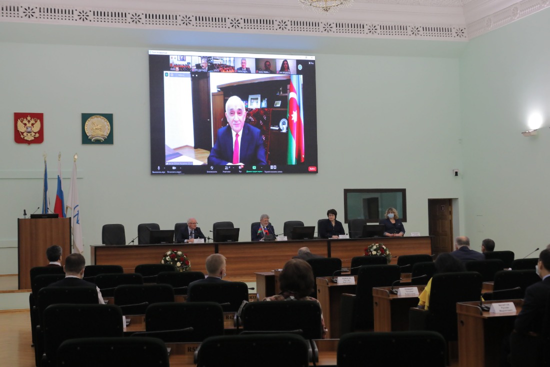 SDU-nun rektoru həmkarlarına üz tutaraq Ermənistan tərəfindən işğal olunmuş Azərbaycan ərazilərinin azad edilməsi ilə bağlı son hadisələr barədə qısaca məlumat vermək istədiyini bildirərək vurğuladı: “Hörmətli həmkarlar! Bildiyiniz kimi, Ermənistan Azərbaycan ərazilərinin 20 faizini işğal edib. BMT Təhlükəsizlik Şurası işğal olunmuş ərazilərin dərhal azad edilməsini tələb edən 4 qərar qəbul edib. Təəssüf ki, 30 ilə yaxındır ki, bu qətnamələr yerinə yetirilmir. ATƏT-in Minsk Qrupu, bu qrupun həmsədrləri məhz bu məqsədə xidmət etdiklərinə baxmayaraq, münaqişənin həlli və BMT Təhlükəsizlik Şurasının qətnamələrinin icrası üçün praktik olaraq heç bir iş görməyiblər. 30 il ərzində həmsədrlər tərəflərin saysız-hesabsız görüşlərini keçirmişlər, lakin göründüyü kimi, bu görüşlər danışıqlar prosesini təqlid etmək məqsədilə keçirilmişdir. Ermənistan cidd-cəhdlə prosesi uzatmağa və bununla o dövrdə mövcud olan status-kvonu qorumağa çalışır, həmsədrlər isə öz fəaliyyətsizlikləri ilə buna zəmin yaradırdılar. Ermənistanın həm keçmiş, həm də indiki rənbərliyi hər vəchlə yeni bir müharibənin başlanmasına təhrik edirdilər: Ermənistanın keçmiş prezidenti Serj Sarkisyan Qarabağdakı azərbaycanlıların məhv edilməsində şəxsən iştirak etdiyini fəxrlə bəyan etdi. Bildirdi ki, Xocalıda (Xocalı soyqırımında) ermənilər dinc, silahsız azərbaycanlıları öldürə biləcəklərini göstərdilər. Ermənistan müdafiə naziri erməni diasporunun nümayəndələri ilə söhbətində belə dedi: “Yeni müharibə və yeni ərazilər haqqında düşünürük”. Ermənistanın hazırkı Baş Naziri Nikol Paşinyan dedi: “ Qarabağ Ermənistandır və nöqtə!" Faktiki olaraq, o, danışıqlar prosesinə son qoydu. Bu ilin iyul ayında Ermənistan Qarabağdan uzaqda yerləşən Tovuz istiqamətində hücuma başladı. Bununla da, müdafiə nazirinin yeni müharibə və yeni ərazilər üçün çağırışını həyata keçirmiş oldular. İkinci Qarabağ müharibəsi ərəfəsində Ermənistan terror aktları törətmək üçün təxribat qrupu göndərdi. Təxribat qrupu aşkar edildi, bir hissəsi Ermənistana qaçdı, qrupun başçısı tutuldu və hazırda ifadə verir. Sentyabrın 27-də erməni tərəfi Azərbaycan mövqelərinə və kəndlərinə atəş etdi. Azərbaycan Silahlı Qüvvələri cavab addımları atdı. 44 günlük müharibə nəticəsində Azərbaycanın Silahlı Qüvvələri işğal olunmuş ərazilərin çoxunu azad etdi. 8 noyabrda Azərbaycanın mədəniyyət mərkəzlərindən biri olan Şuşa şəhəri azad edildi. Azərbaycan Silahlı Qüvvələri artıq Xankəndinin divarları qarşısında idilər. Rusiya Federasiyasının müdaxiləsindən sonra sizə də məlum olan üçtərəfli bəyanat imzalandı. Xüsusi olaraq vurğulayım ki, Ermənistan təmas xəttindən yüzlərlə kilometr məsafədə olan Gəncə, Mingəçevir, Xızı, Bərdə və Tərtər şəhərləri də daxil olmaqla, Azərbaycanın şəhər və kəndlərini atəşə tutdu. Erməni generalları fəxrlə xəbər verirdilər ki, atəş meydanında “Toçka –U” raketləri, ballistik raketlər və digərlərindən də istifadə ediblər. Ürək ağrısı ilə qeyd edim ki, yalnız Gəncə şəhərində atəş nəticəsində, 1 nəfər Rusiya Federasiyası vətəndaşı da daxil olmaqla, 24 nəfər həlak oldu. Təxminən 30 il əvvəl Ermənistan tərəfindən işğal olunmuş şəhərlər və kəndlər vəhşicəsinə talanmış və dağıdılmışdır. Bu ərazilərdəki 67 məsciddən 63-ü dağıdılaraq məhv edilmişdir. Ermənilər müsəlman əhalinin hisslərini təhqir edərək məscidlərdə donuz saxlamışlar. Keçən əsrin 90-cı illərinin əvvəllərində işğal etdikləri ərazilərdən çıxan ermənilər onlara məxsus olmayan, vaxtilə azərbaycanlılara məxsus olan, zorla aldıqları evləri yandırmış, dağıtmışdır. Azərbaycanın Vətən müharibəsi dövründə Assosiasiyaya üzv olan bütün universitet rektorlarına məlumat məktubu göndərdim. Ancaq düşündüm ki, bu gün Rusiya–Azərbaycan Universitetləri Assosiasiyasının həmsədri olaraq öz çıxışımda bu məsələ barədə mütləq məlumat verim. Çünki verməyə bilməzdim. İşğaldan azad olunan bölgələrin vəziyyətini gördükcə düşünürsən ki, doğrudan da bu 30 ildə dünyanın gözü qarşısında ən böyük cinayət işlənib, terror aktına imza atılıb. Amma bütün bunlara baxmayaraq, xalqımız, dövlətimiz özündə güc tapıb, yaşayıb, inkişaf edib. Müharibədə qazanılan qələbə Azərbaycanın əsgər və zabitlərinin qəhrəmanlığı, Azərbaycan Prezidenti cənab İlham Əliyevin hərbi liderlik istedadı nəticəsində mümkün oldu. Bu qələbə həm də müharibənin xarakteri ilə təmin edildi. Azərbaycan üçün bu müharibə, sözün əsl mənasında, Vətən, Qurtuluş Müharibəsi idi”.