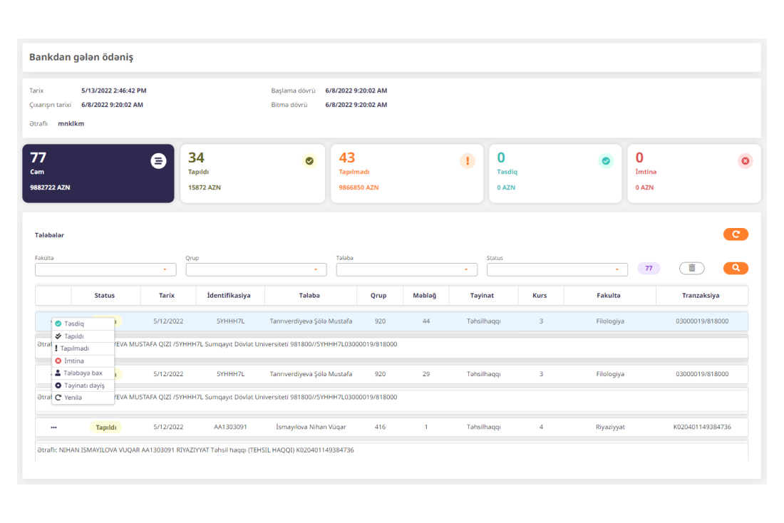· Tələbə ödənişlərinin izlənilməsi
