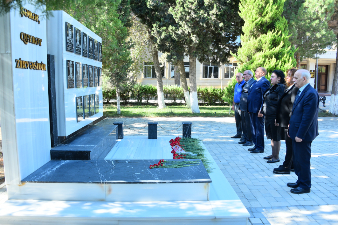 Tədbir iştirakçıları əvvəlcə şəhidlik zirvəsinə ucalan tələbə-məzunların universitetin həyətində yerləşən xatirə abidəsini ziyarət etdilər və abidə önünə gül dəstələri düzdülər.Vətənimizin azadlığı və ərazi bütövlüyü uğrunda canlarından keçən şəhidlərimizin ruhu bir dəqiqəlik sükutla yad edildi.