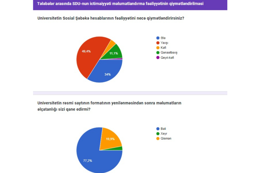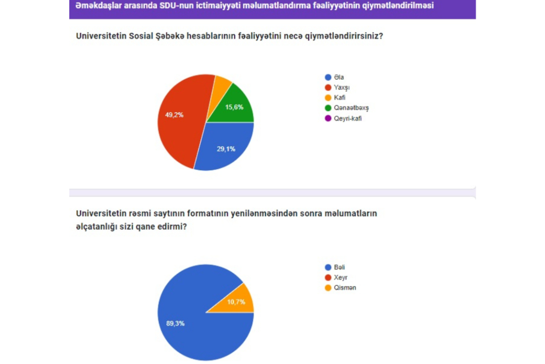 Qeyd edək ki, aparılmış sorğu çərçivəsində universitetin ictimaiyyəti məlumatlandırma fəaliyyətinin təkmilləşdirilməsi istiqamətində iştirakçıların rəy və təklifləri dəyərləndiriləcək.