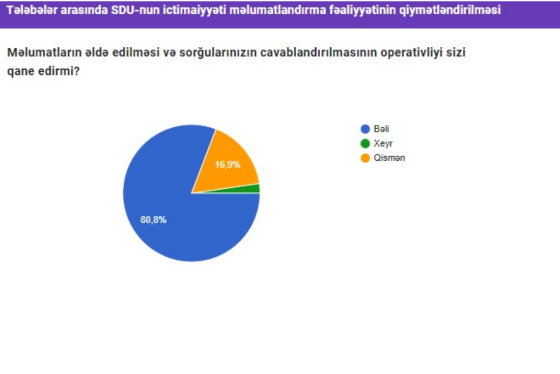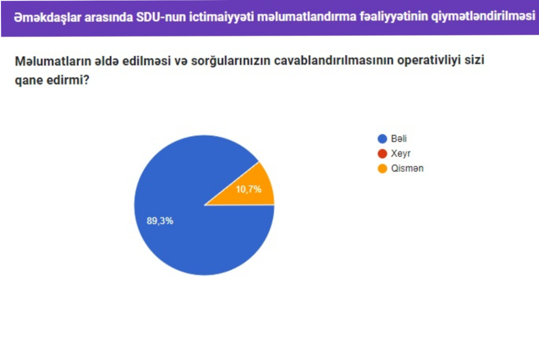 SDU-da ictimaiyyəti məlumatlandırma fəaliyyətinin qiymətləndirilməsi ilə bağlı sorğu keçirilmişdir