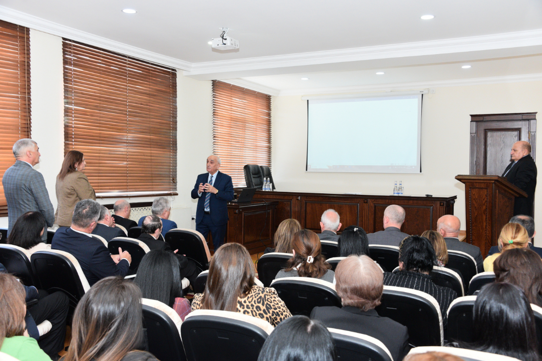 “QS Quacquarelli Symonds” beynəlxalq reytinq agentliyi  ilə qarşılıqlı əməkdaşlıq perspektivləri barədə məlumat verən universitetin İqtisadiyyat və idarəetmə fakültəsinin baş müəllimi, beynəlxalq reytinq sistemləri ilə əməkdaşlıq layihəsini təqdim edən Nihad Hüseynov təqdimatdan əvvəl gündəlik baxılacaq məsələlərdən danışdı, GZİT analiz, komanda təşkili və koordinasiya, informasiya axınının təşkili barədə informasiya verdi. Dünya və regionlar üzrə seçilmiş ixtisaslara görə reytinq, davamlılıq üzrə reytinq, ətraf mühit, sosial və idarəetmə (ESG) problemləri ilə mübarizə aparmasına görə reytinq, maliyyə, menecment, marketinq, təchizat zəncirinin idarə edilməsi və biznes analitikası magistratura ixtisasları üzrə reytinq barədə danışan Nihad Hüseynov bu sahədə reytinqləri müəyyənləşdirən cədvəllərdə yer tutmaq məsələsinin universitetlər üçün niyə vacib məsələ olduğundan söz açdı. Qlobal MBA reytinqi, dünya üzrə istehsalatyönümlü ixtisaslar üçün reytinq, məzunların məşğulluq reytinqi, Regional Universitet reytinqi və digər anoloji məsələlər barədə danışan təqdimatçı universitetin güclü və zəif tərəfləri barədə məlumat verdi.