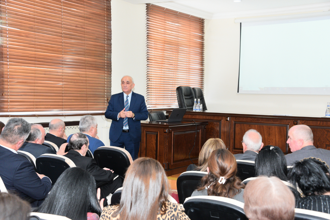 Məruzə üçün söz alan SDU-nun rektor müşaviri dosent Zəfər Hüseynov ali təhsil müəssisəsinin əsas strateji hədəfinin “Təhsil-tədqiqat-innovasiya” universitetinə çevrilmək olduğunu bildirərək auditoriyaya suallar ünvanladı. Son illərdə universitetdə təhsilin inkişafı istiqamətində mühüm addımlar atıldığını, təhsilin normativ hüquqi bazasının təkmilləşdirildiyini, maddi-texniki təminat istiqamətində geniş tədbirlər həyata keçirildiyini qeyd edən dosent Zəfər Hüseynov bu işlərin davam etdirildiyini bildirdi. SDU-da tədris prosesinin elmi-tədqiqatla əlaqələndirilməsi, elm və təhsilin istehsalatla inteqrasiyasının gücləndirilməsi, innovasiyaların tədris prosesinə tətbiqi barədə danışan rektor müşaviri  digər universitet və elmi təşkilatlar ilə elmi-tədqiqat və kadr hazırlığı sahəsində əməkdaşlığın yaradılması və inkişaf etdirilməsi  istiqamətində görülən işlər barədə danışdı.