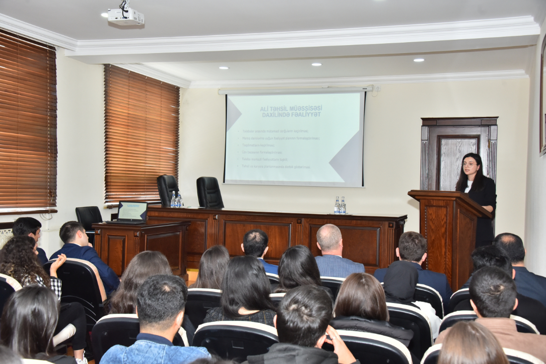 Sonra Klubun rəhbəri Tarix və coğrafiya fakültəsinin tələbəsi Songül Kərimzadə “YENİ klub”la bağlı ətraflı məlumat verdi. Klubun ali təhsil müəssisəsi daxilindəki digər təşkilatlarla birgə fəaliyyət həyata keçirəcəyini, yarış, müsabiqə, layihə, debat, diskussiya, təlim, həmçinin xarici dillərdə tədbirlər təşkil edəcəyini, tələbələrin həyatında müsbət mənada rol oynayacağına inandığını bildirdi.