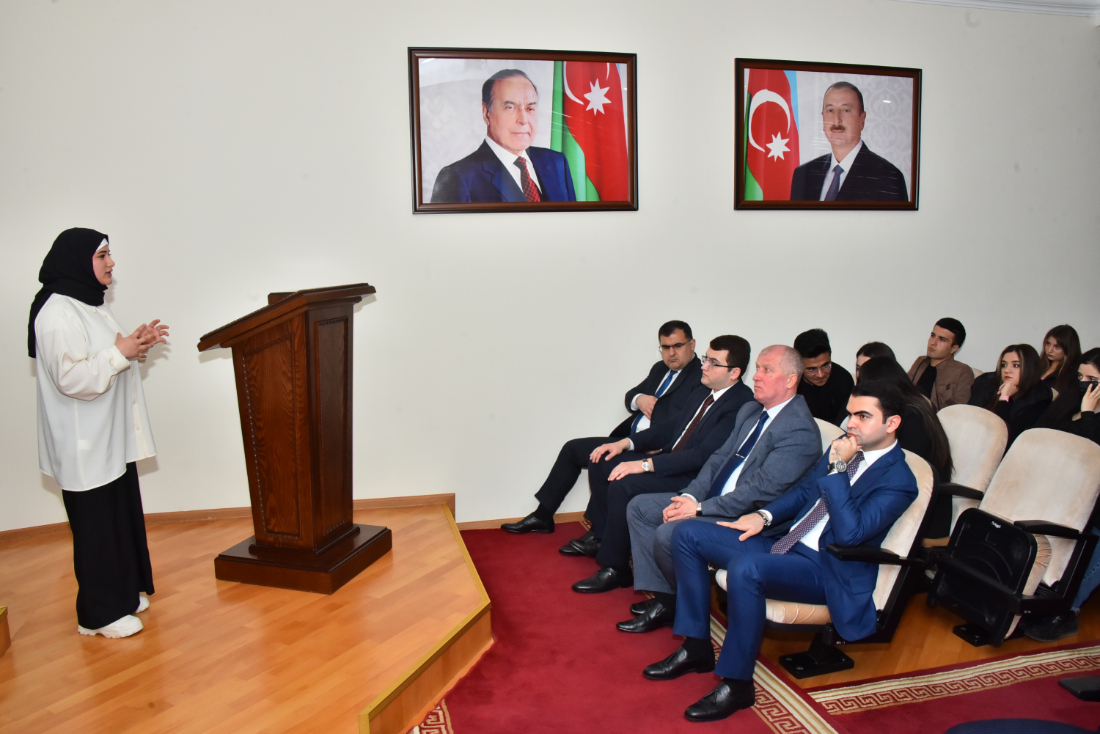 Əvvəlcə iştirakçılar Ulu Öndər Heydər Əliyevin universitetin foyesində ucaldılmış büstü önünə gül dəstələri düzüb, xatirəsini ehtiramla yad etdilər.