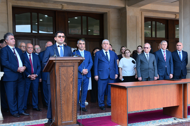 Əvvəlcə professor-müəllim heyəti Ulu Öndər Heydər Əliyevin universitetin foyesində ucaldılmış büstü önünə gül dəstələri düzüb, xatirəsini ehtiramla yad etdilər.Vətənimizin ərazi bütövlüyü uğrunda canlarından keçən şəhidlərimizin əziz xatirəsi bir dəqiqəlik sükutla yad edildi.