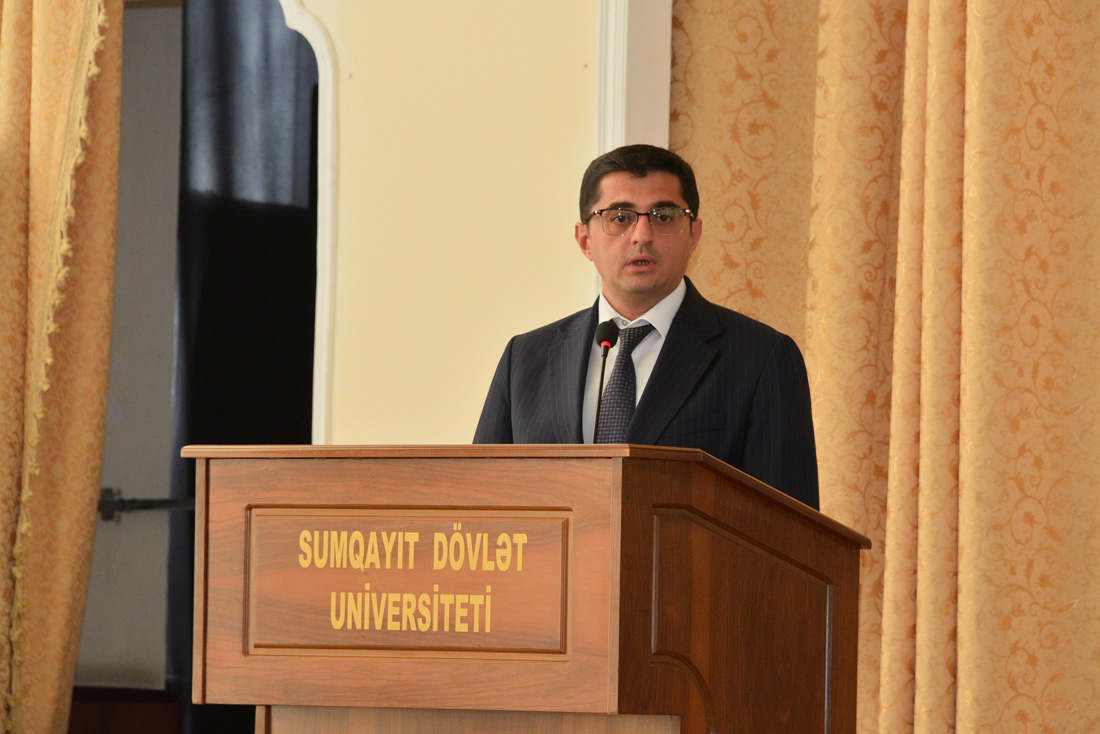 Sumqayıt Dövlət Universitetinin rektoru Rüfət Əzizov konfrans iştirakçılarını salamladı, mövzunun aktuallığına toxunaraq regionlarda bu istiqamətdə tədbirlərin əhəmiyyətini vurğuladı.