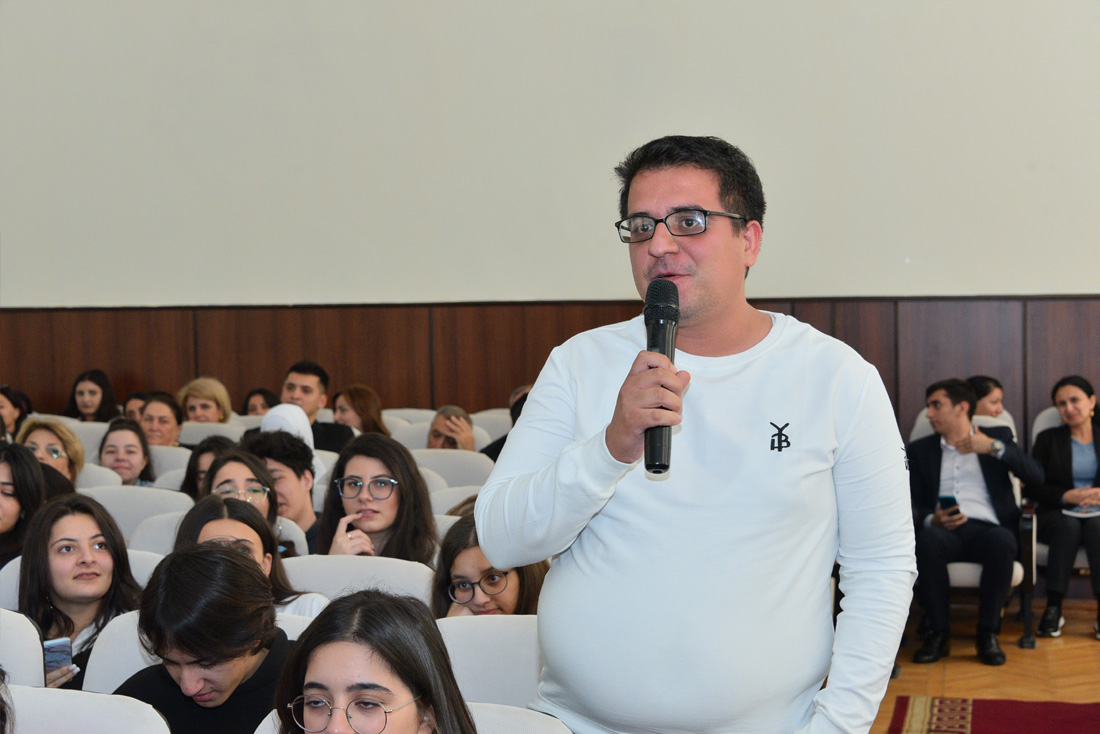 Layihənin rəhbəri, Bakı Politoloqlar Klubunun sədri Zaur Məmmədov rektor Rüfət Əzizova yaratdığı şəraitə görə təşəkkür edərək “Qərbi Azərbaycan irsinin tanıdılmasında Ümummilli Lider Heydər Əliyevin rolu” layihəsinin məqsədləri haqqında danışdı, “Tarixi Azərbaycan torpaqlarına qayıdış – milli prioritetimizdir: Prezident İlham Əliyevin Qərbi Azərbaycan hədəfi” mövzusunda çıxış etdi.