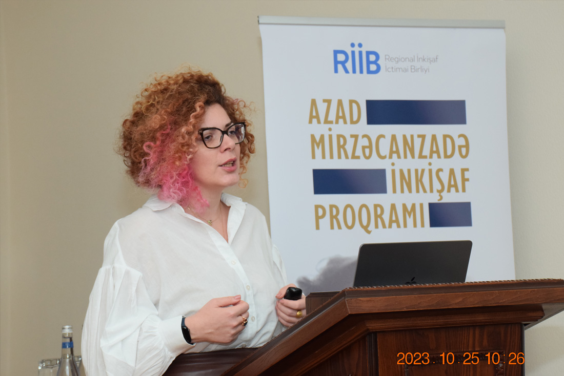 RİİB-in nümayəndəsi Təbriz Rzayevtəmsil etdiyi qurumun fəaliyyəti və məqsədi, eyni zamanda hazırda Akademik Azad Mirzəcanzadə adına inkişaf proqramı çərçivəsində gerçəkləşdirilən məlumatlandırıcı sessiyalar barədə məlumat verdi.