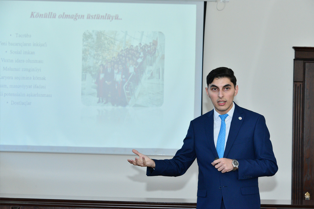 Könüllülük fəaliyyətinin təbliğini həyata keçirmək, tələbə könüllülük fəaliyyəti, şəxsi inkişaf ilə bağlı həvəsləndirici mövzuda çıxışlar etmək, karyerasına könüllülük fəaliyyəti ilə bağlı başlayan gənclərin uğurlarını onlara əyani şəkildə göstərmək, sosial xidmətlər sahəsində könüllü müraciətlərinin sayını və gənclərin bu sahəyə marağını artırmaq üçün təşkil olunan infosessiyada SDU-nun əməkdaşları və tələbələr iştirak edib.