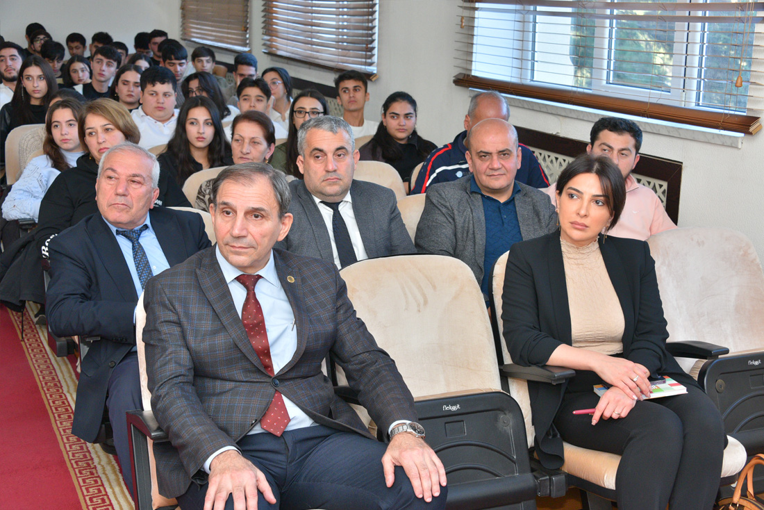 Görüşü giriş sözü ilə açan universitetin Sosial məsələlər və ictimaiyyətlə əlaqələr üzrə prorektoru dosent Elmar Xəlilov çıxış edərək qonaqları və iştirakçıları salamladı, bildirdi ki, bu gün Prezident İlham Əliyevin diqqət və qayğısı ilə ölkəmizdə uğurla davam etdirilən gənclər siyasəti mahiyyət və keyfiyyətcə yeni müstəviyə qədəm qoymuşdur. Bu siyasət gənc nəslin tərbiyəsi, sağlamlığı, təhsili, intellektual və mənəvi inkişafı, asudə vaxtının səmərəli təşkili, həmçinin, gənclərin cəmiyyət həyatının bütün sahələrində fəal iştirakı ilə bağlı geniş məsələləri əhatə edir. Gənclərlə düzgün iş strategiyasının müəyyənləşdirilməsi və bu strategiyadan irəli gələn vəzifələrin dəqiqliklə yerinə yetirilməsi nəticəsində bu gün Azərbaycan gənci elm, mədəniyyət, incəsənət, idman və s. sahələrdə böyük nailiyyətlər əldə edir, dövlətçilik ənənələrini daim uca tutur, çoxşaxəli dövlət islahatlarının həyata keçirilməsində yaxından iştirak edir. Ümumiyyətlə, gənclik cəmiyyətin aparıcı qüvvəsidir. Bu qüvvəni yalnız yüksək elm və təhsillə, qabiliyyət və bacarıqla reallaşdırmaq mümkündür.