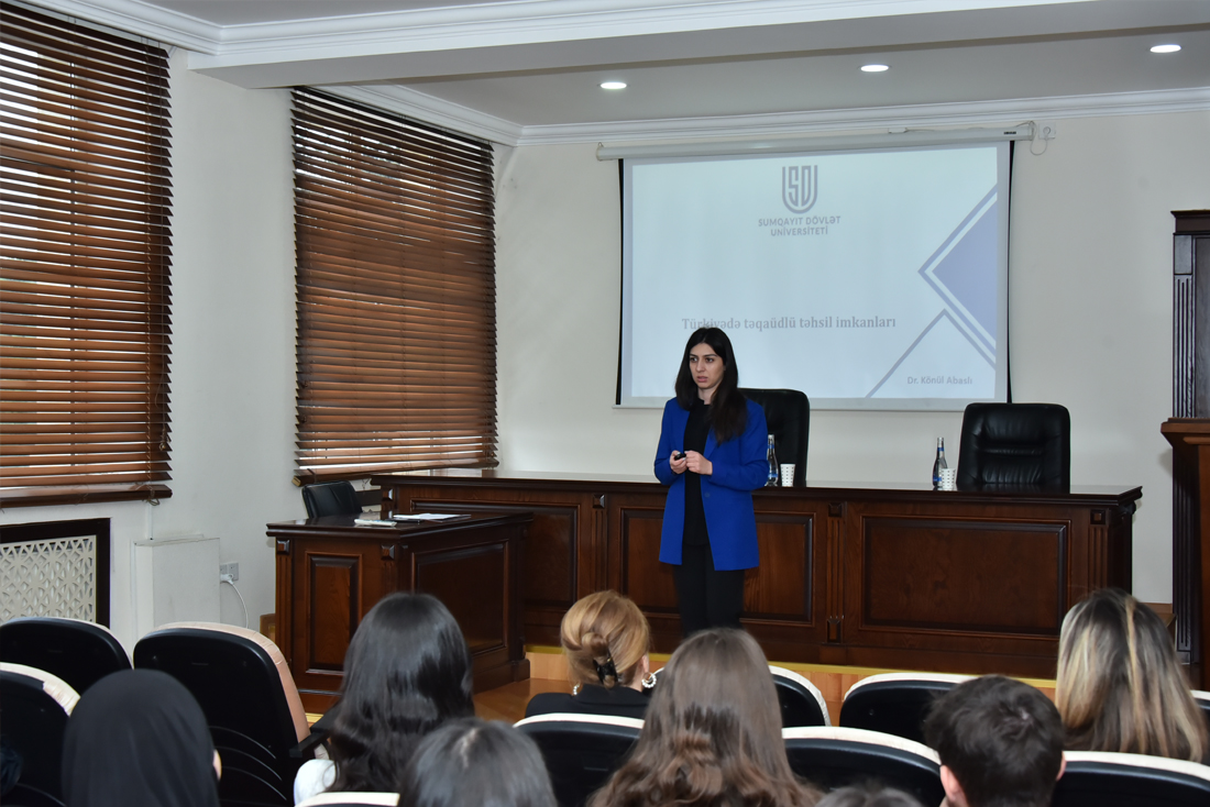 Yanvarın 29-da Sumqayıt Dövlət Universitetində (SDU) Karyera və Məzunlarla İş Mərkəzinin təşkilatçılığı ilə Türkiyədə təqaüdlü təhsil imkanları haqqında tələbələr üçün infosessiya keçirildi.