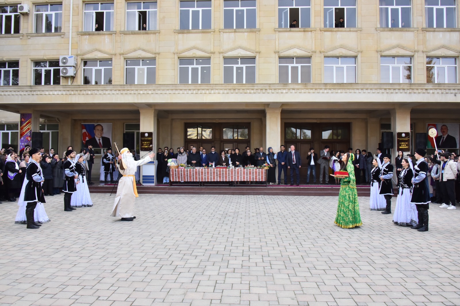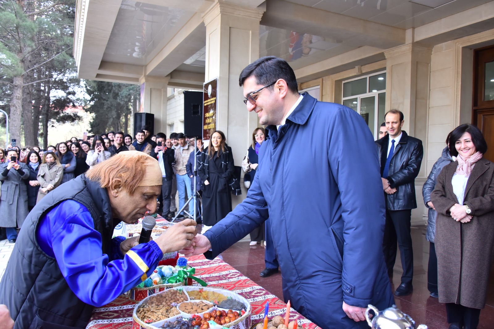 Rektor Rüfət Əzizov tədbirdə iştirak edən hər kəsi qarşıdan gələn Novruz bayramı münasibətilə təbrik edib və xoş arzularını çatdırıb. Hər bir xalqın ona aid olan bayramların və adət-ənənələrin o xalqın daşıdığı dəyərlərlə həmahəng olduğunu qeyd edib. Xalqımızın sevə-sevə qeyd etdiyi bu bayramın bizim adət-ənənələrimizi əsrlər boyu yaşadaraq bu günlərə gətirdiyi kimi, bizi bir xalq kimi birləşdirərək həmrəyliyə səslədiyini vurğulayıb.