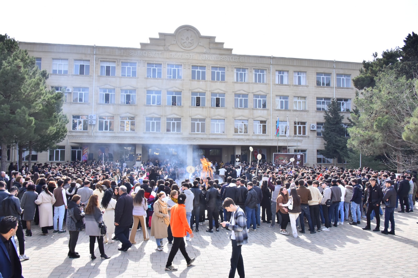 Martın 15-də Sumqayıt Dövlət Universitetinin əsas tədris binasının həyətində professor-müəllim heyəti, əməkdaşlar və tələbələr, həmçinin SDU-nun əməkdaşlıq etdiyi müəssisələrdən olan qonaqların iştirakı ilə Novruz şənliyi keçirilib.