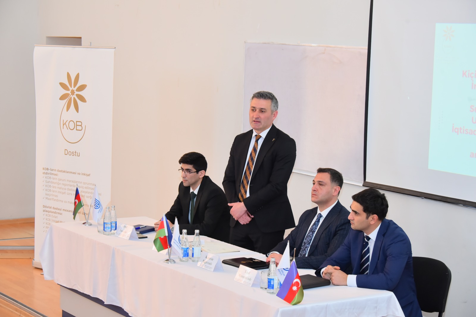 Sonra KOBİA təmsilçilərinin İqtisadiyyat və idarəetmə fakültəsinin müəllim və tələbə heyəti ilə görüşü keçirilib. KOBİA ilə İqtisadiyyat və idarəetmə fakültəsi arasında konkret əməkdaşlıq istiqamətində fikir mübadiləsi aparılıb.