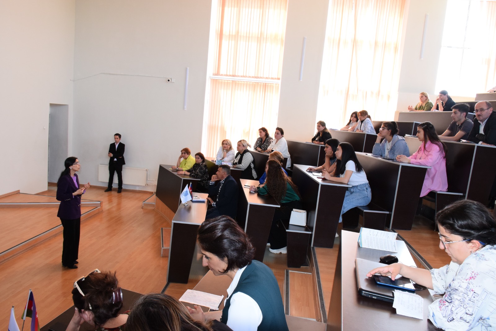 Universitetin əməkdaşları ilə bərabər tələbələrin də iştirak etdiyi, SDU İqtisadiyyat və idarəetmə fakültəsinin təşkilatçılığı, Mərkəzi Bankın müvafiq struktur mütəxəssislərinin təlimçiliyi ilə təşkil olunan təlim Biznesin təşkili və menecment kafedrasının baş müəllimi, iqtisadiyyat elmləri üzrə fəlsəfə doktoru Zülfiyyə Hacıyevanın spikerliyi ilə başladı.