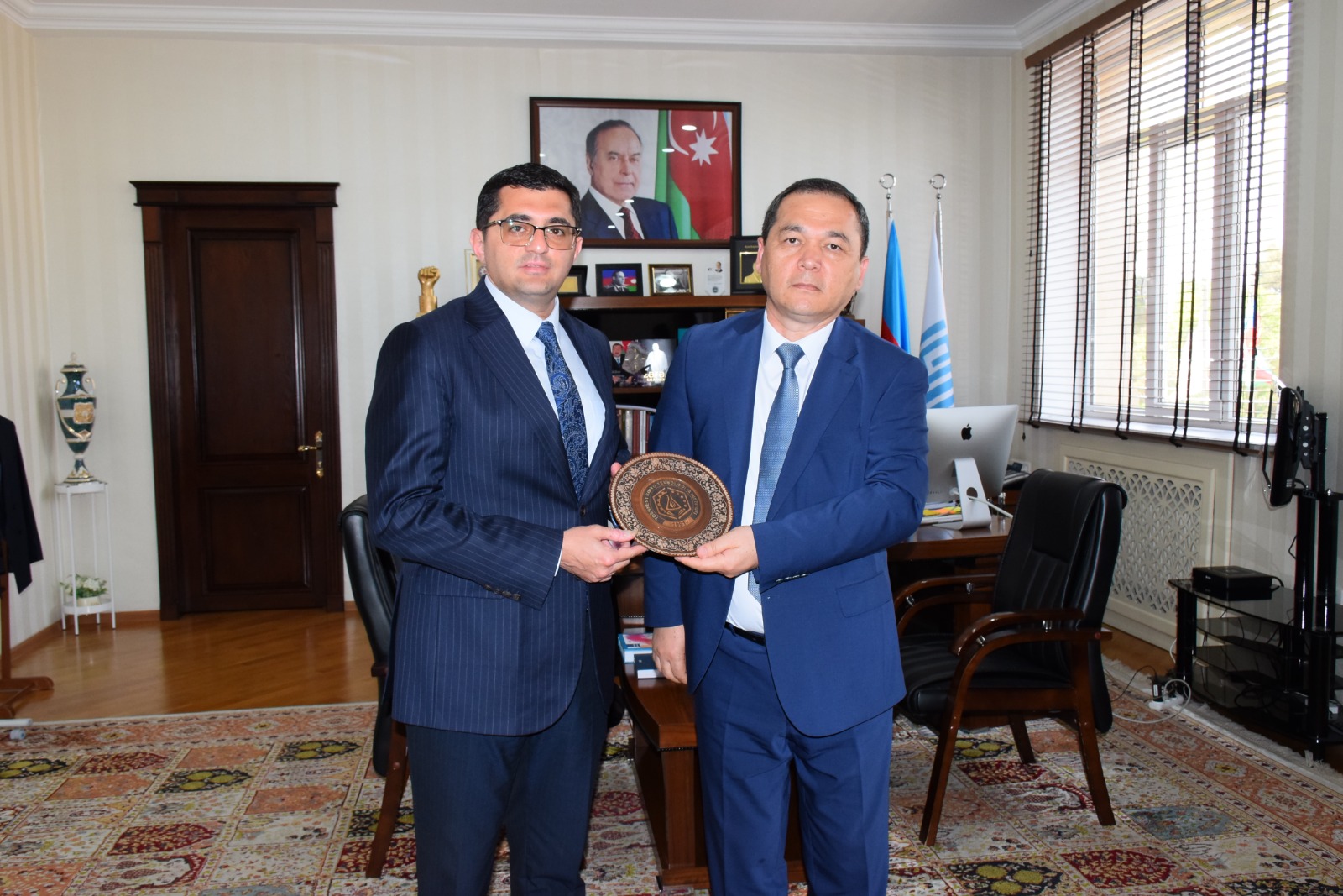 Rektor dosent Rüfət Əzizov qonaqlara xatirə hədiyyəsi təqdim etdi.