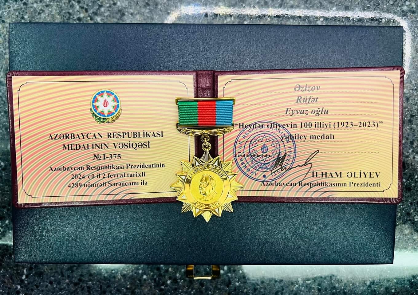 Azərbaycan Respublikasının Prezidenti İlham Əliyevin müvafiq Sərəncamı ilə Sumqayıt Dövlət Universitetinin rektoru, dosent Rüfət Əzizov "Heydər Əliyevin 100 illiyi (1923-2023)" yubiley medalı ilə təltif edilib. Medal 30 aprel tarxində Azərbaycan Respublikasının elm və təhsil naziri Emin Əmrullayev tərəfindən təqdim olunub. Rüfət Əzizov öz sosial şəbəkə hesablarında "Heydər Əliyevin 100 illiyi (1923-2023)" yubiley medalına layiq görülməyin çox qürurverici olduğunu vurğulayıb və verilən yüksək dəyərə görə Cənab Prezident İlham Əliyevə dərin təşəkkürünü ifadə edib. Rektora təqdim olunan yubiley medalı SDU ailəsinə göstərilən diqqətin ən yüksək göstəricisidir. Sumqayıt Dövlət Universiteti Ümummilli Lider Heydər Əliyev irsinin tədqiqində və təbliğində, Azərbaycançılıq ideyasının həyata keçirilməsində hər zaman fəal rol oynayıb.
