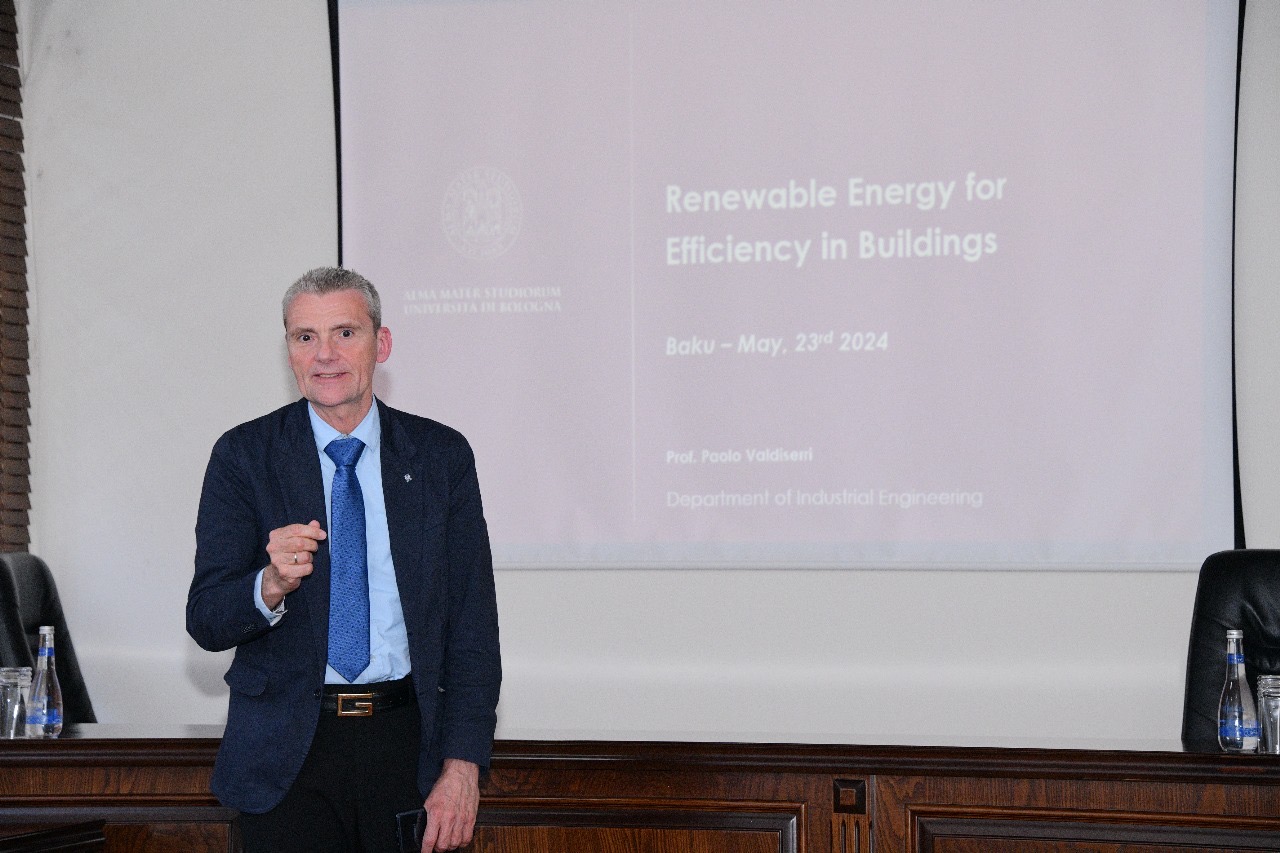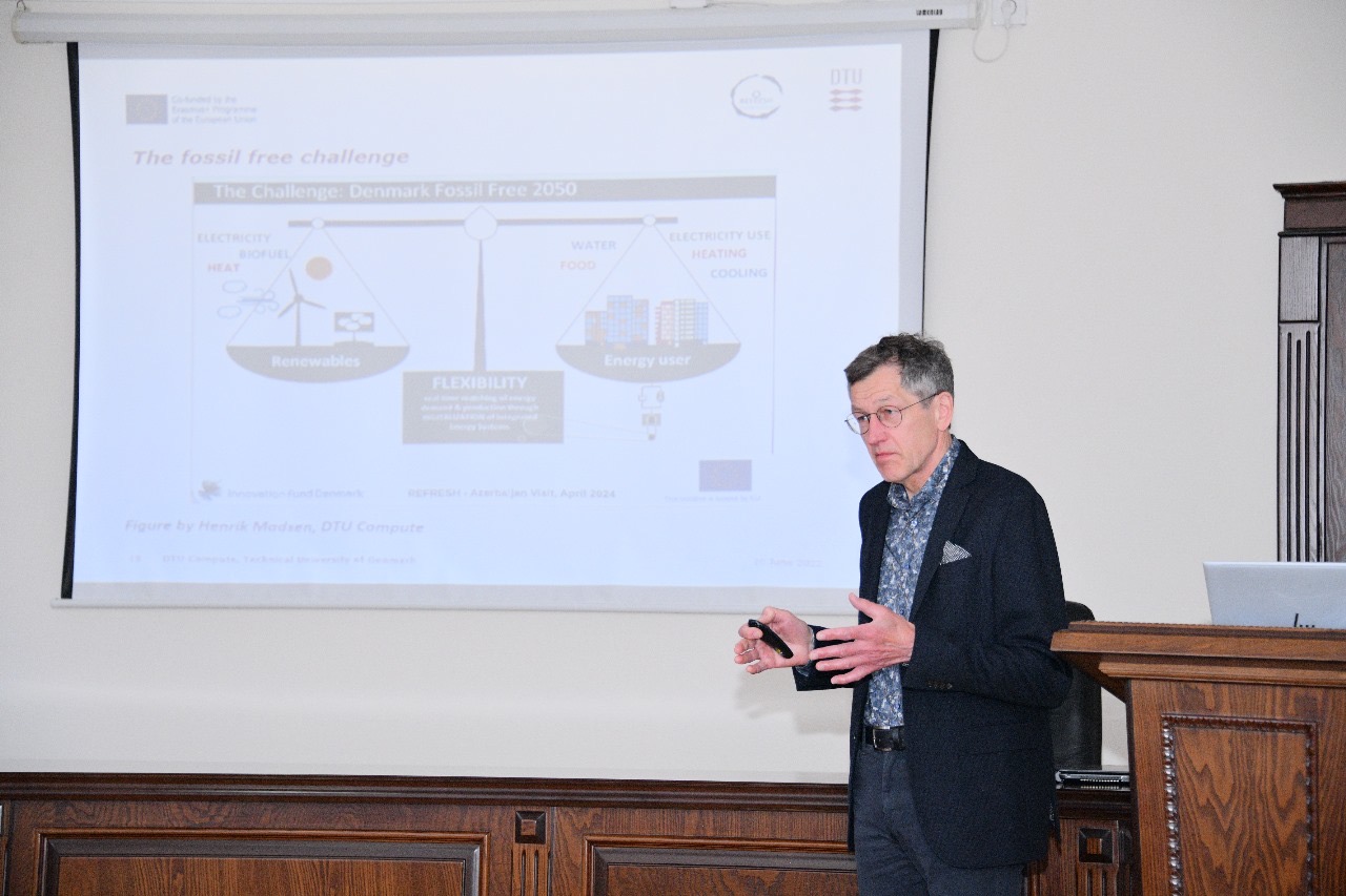 Daha sonra DTU-nun professoru Mads Peter Sorensen "REFRESH" çərçivəsində DTU-da Azərbaycan tərəfdaşları ilə birgə həyata keçirilən Müəllimlərin Təlimi (ToT) seminarı haqqında danışıb. Bolonya Universitetindən professor Paolo Valdiseri isə "Binalarda enerji səmərəliliyi" mövzusunda professor-müəllim heyəti və tələbələr qarşısında çıxış edərək "yaşıl iqtisadiyyat" və bərpa olunan enerji sahəsində texniki idarəetmə və təhsil innovasiyalarını əhatə edən tədqiqatların vacibliyindən bəhs edib. Tədbir, professor-müəllim heyətinin və Avropa İttifaqının tərəfdaş universitetlərinin nümayəndələrinin iştirakı ilə keçirilən müzakirələrlə davam edib.