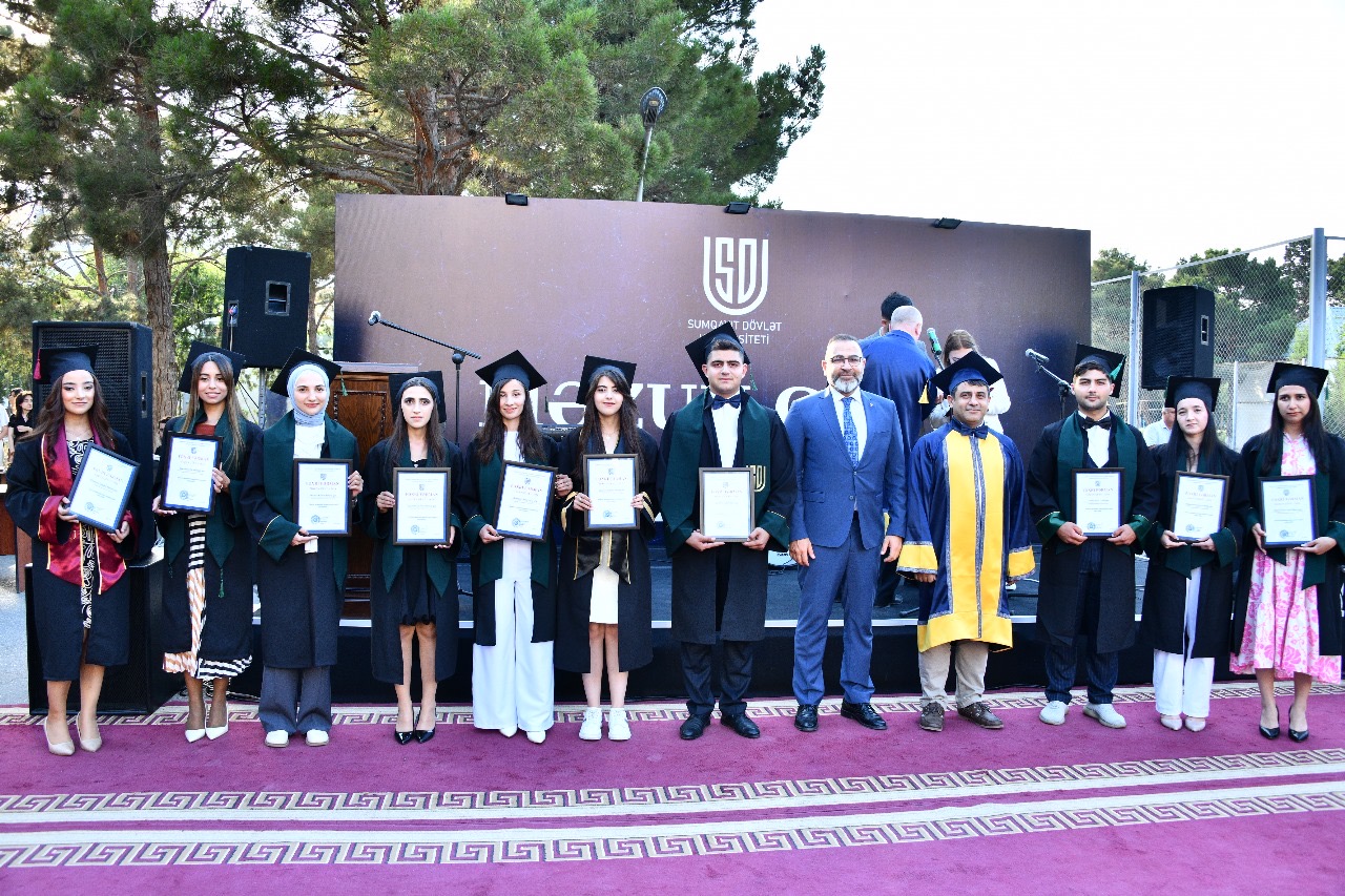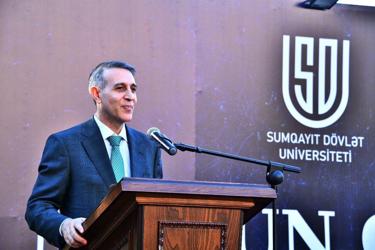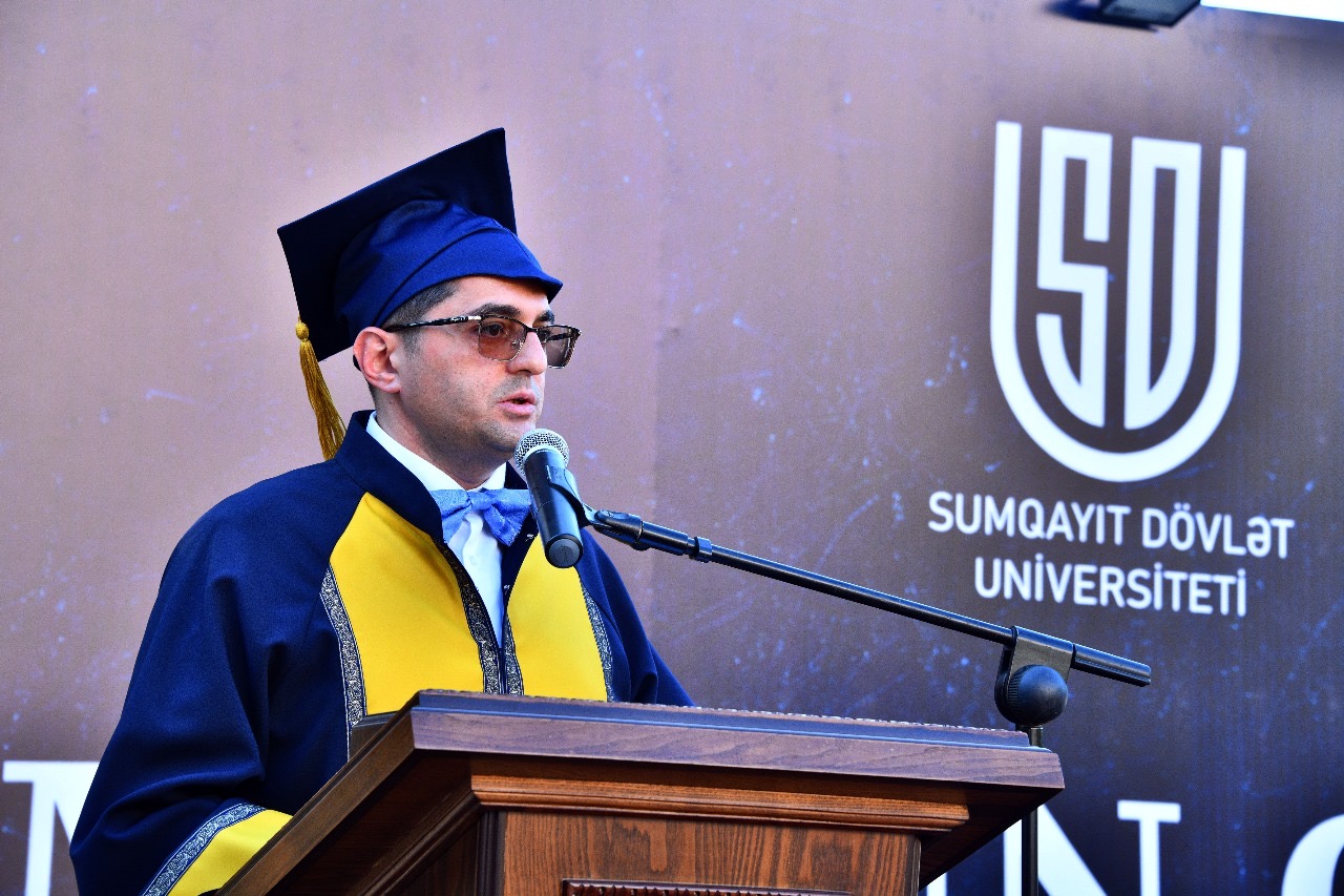 Müstəqil həyata mütəxəssis kimi vəsiqə alan məzunları təbrik edən Sumqayıt şəhər İcra Hakimiyyəti başçısının birinci müavini Teymur Səmədov şəhər İcra başçısı cənab Zakir Fərəcovun salamını çatdırdı, regionun davamlı inkişafına töhfə verən və şəhərimizin yeganə ali təhsil müəssisəsi olan SDU - nun fəaliyyətini və universitetdə yüksək səviyyəli kadr hazırlığının həyata keçirilməsinin təqdirəlayiq hal olduğunu bildirdi. Bu uğurların təməlində ümummilli lider Heydər Əliyevin müəyyənləşdirdiyi və bu gün də Prezident İlham Əliyev tərəfindən aparılan gənclər siyasəti və eyni zamanda Birinci vitse-prezident Mehriban Əliyevanın təhsilə diqqət və qayğısı durur.