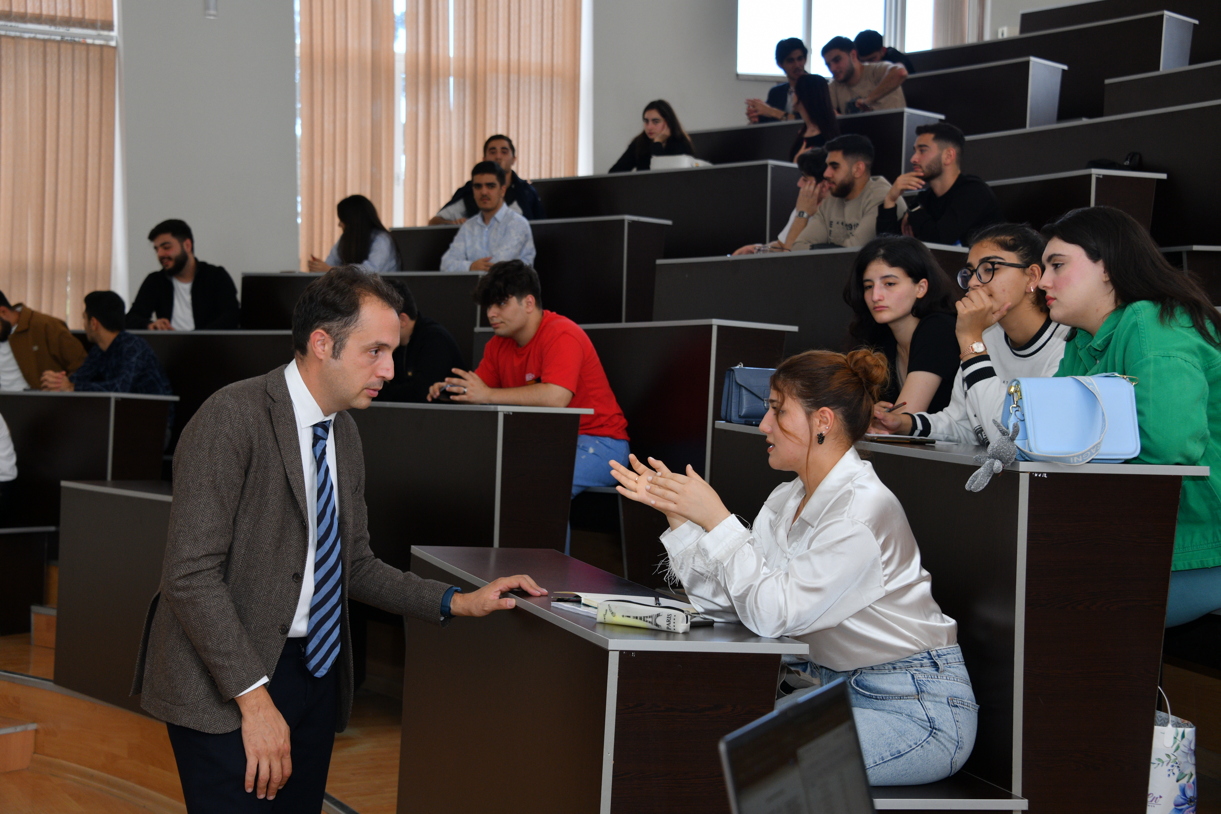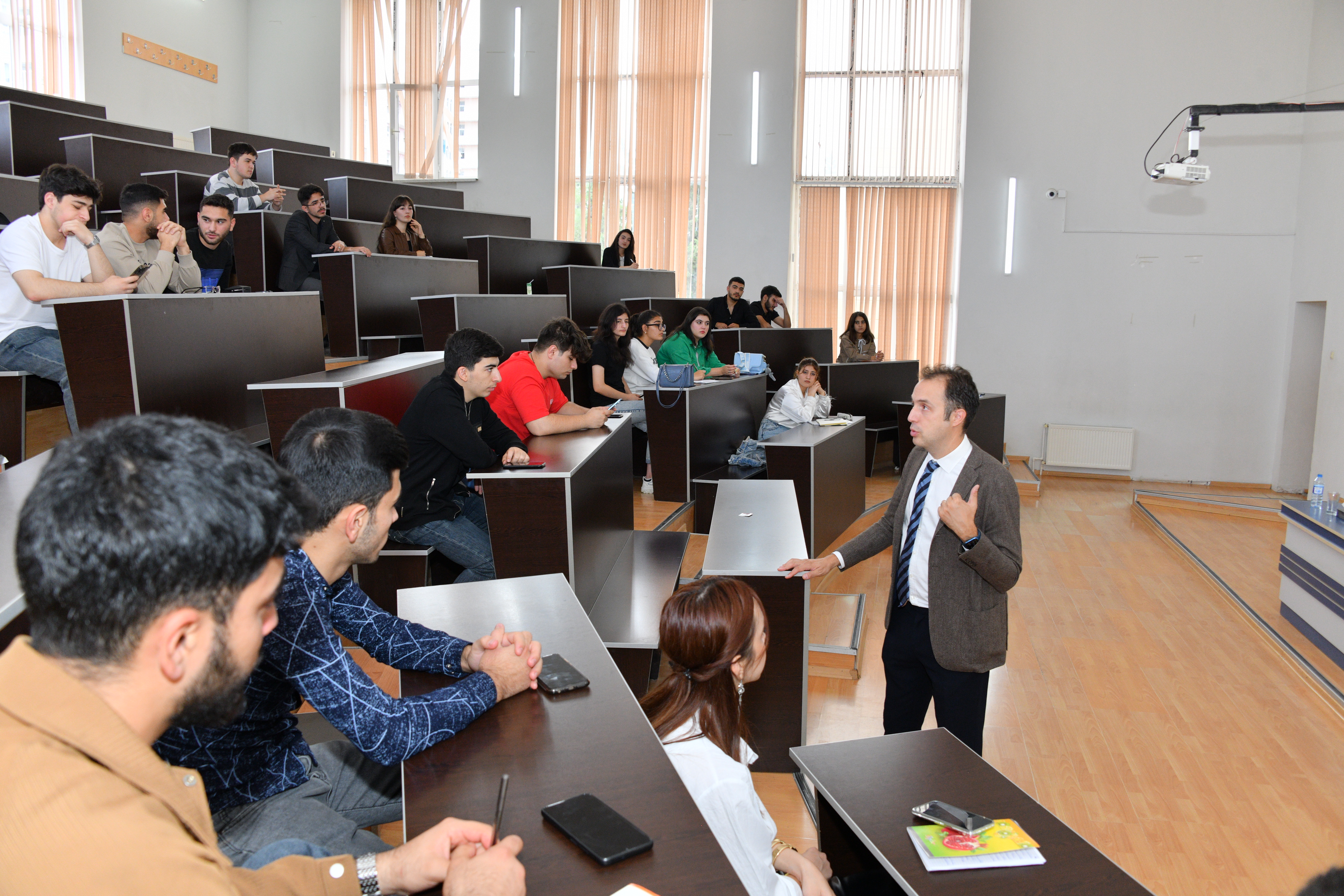 Sumqayıt Dövlət Universitetində SABAH.Academy-nin təşkilatçılığı ilə həyata keçirilən “Əsaslı Dizayn metodu ilə Sahibkarlıq və Yeni Biznesin İnkişafı” adlı proqram çərçivəsində növbəti modul baş tutdu. “Viveka” strateji innovasiya məsləhətçiliyi şirkətinin təsisçi və təlim koordinatoru Emin Okutan “Biznes modelinin yaradılması” mövzusunda çıxış etdi. Dərs müddətində sahibkarlıqda problemin müəyyən olunması və biznes ideyasının yaradılması ilə bağlı müzakirələr aparıldı. Debat formasında keçirilən dərsdə, həmçinin tələbələrə iş situasiyaları ilə bağlı “problem-həll” tapşırıqları verildi, ən yaxşı həllər müəyyən olundu.