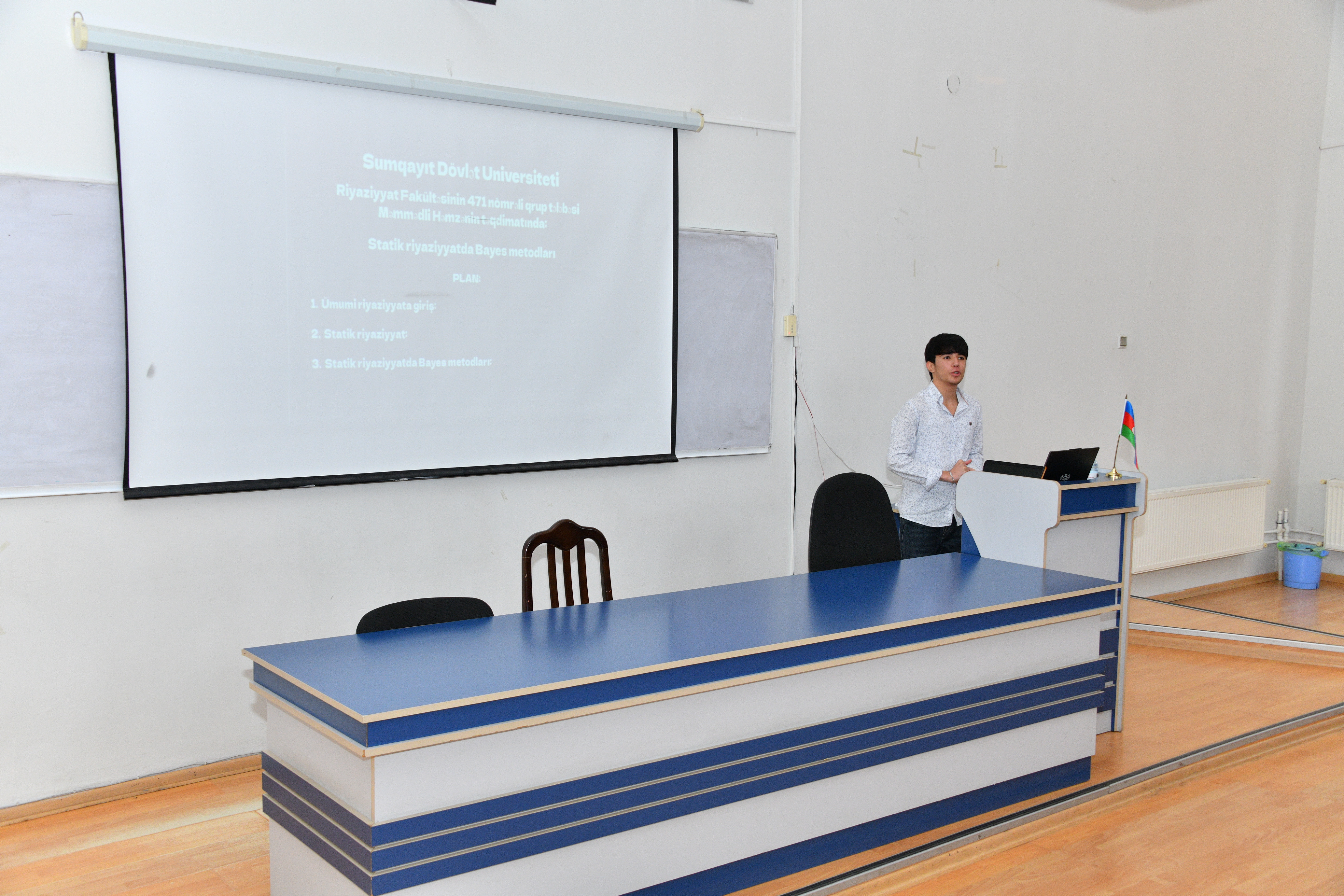 Sumqayıt Dövlət Universitetinin (SDU) Tələbə Elmi Cəmiyyəti və Tələbə Həmkarlar İttifaqı Komitəsinin təşkilatçılığı ilə "Yaşıl dünya naminə həmrəylik ili"nə həsr olunmuş Riyaziyyat fənni üzrə “Elmi tədqiqat” adlı bilik yarışı keçirildi. İki mərhələdən ibarət yarışın ilk mərhələsində 40 tələbə bilik və analitik bacarıqlarını sınamaq üçün mübarizəyə qatıldı. Gərgin və rəqabətli şəraitdə keçən bu mərhələnin sonunda 7 tələbə ikinci tura vəsiqə qazandı. İkinci mərhələdə isə həmin 7 tələbə öz elmi araşdırmalarını təqdim etdi. Onların çıxışları Riyaziyyat və informatikanın tədrisi texnologiyası kafedrasının müəllimlərindən ibarət juri heyəti tərəfindən qiymətləndirildi. Nəticələrə əsasən Riyaziyyat fakültəsinin 471 saylı qrup tələbəsi Məmmədli Həmzə I, 472 saylı qrup tələbəsi Səmədzadə Zərifə II, 471 saylı qrup tələbəsi Hüseynova Rəqsanə isə III yerə layiq görüldü. Qaliblər fəxri fərman və mükafatlarla təltif edildi.