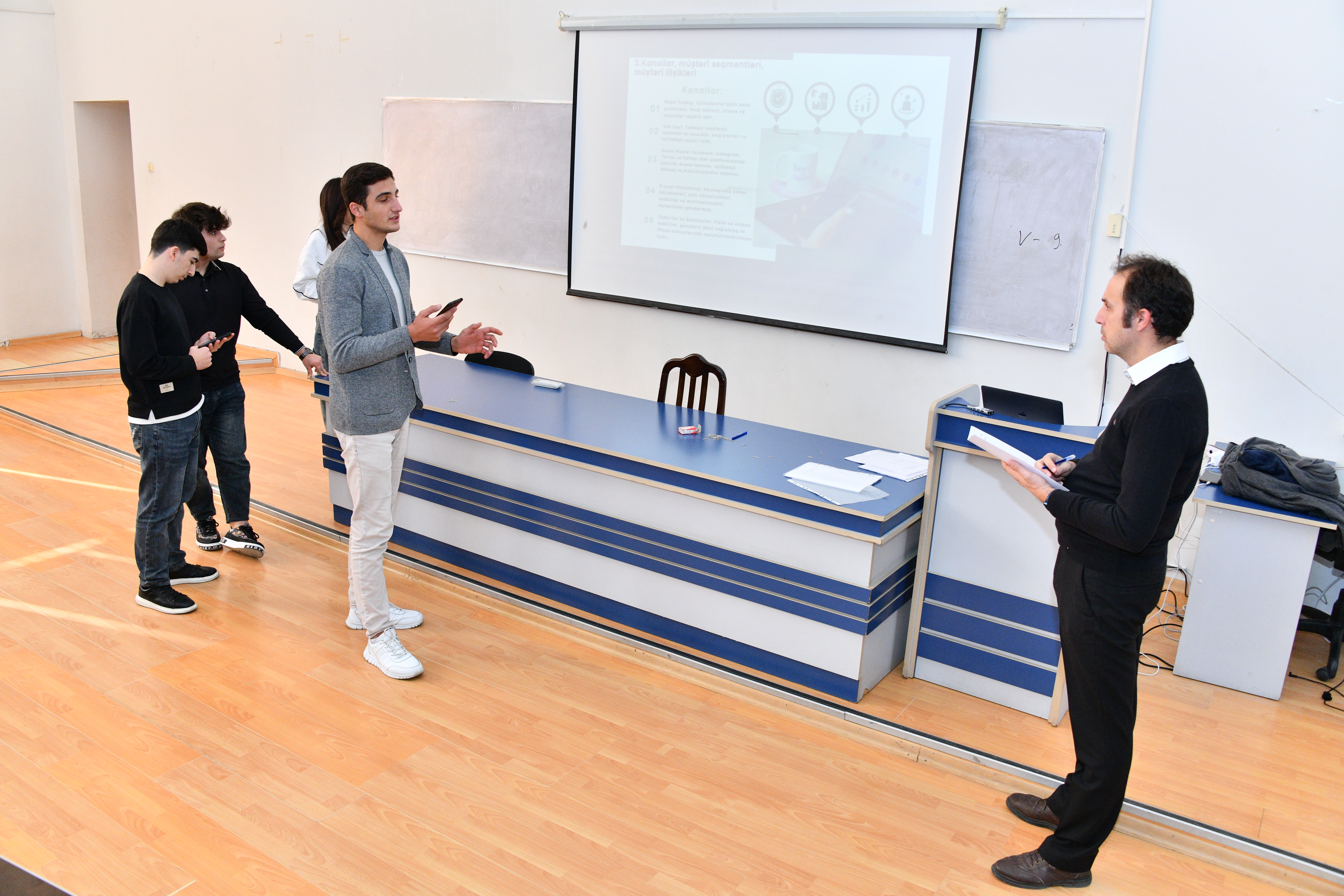 7 noyabr tarixində Sumqayıt Dövlət Universitetində SABAH.Academy-nin təşkilatçılığı ilə həyata keçirilən “Əsaslı Dizayn Metodu ilə Sahibkarlıq və Yeni Biznesin İnkişafı” Proqramı çərçivəsində aralıq imtahanı keçirildi. "Viveka" strateji innovasiya məsləhətçiliyi şirkətinin həmtəsisçisi və təlim koordinatoru Emin Okutan fərqli mövzularda hazırlanmış biznes situasiya tapşırıqları üzrə tələbələrin təqdimatlarını dinləyərək müvafiq qiymətləndirmələr apardı və qruplara lazımi tövsiyyələr verdi.