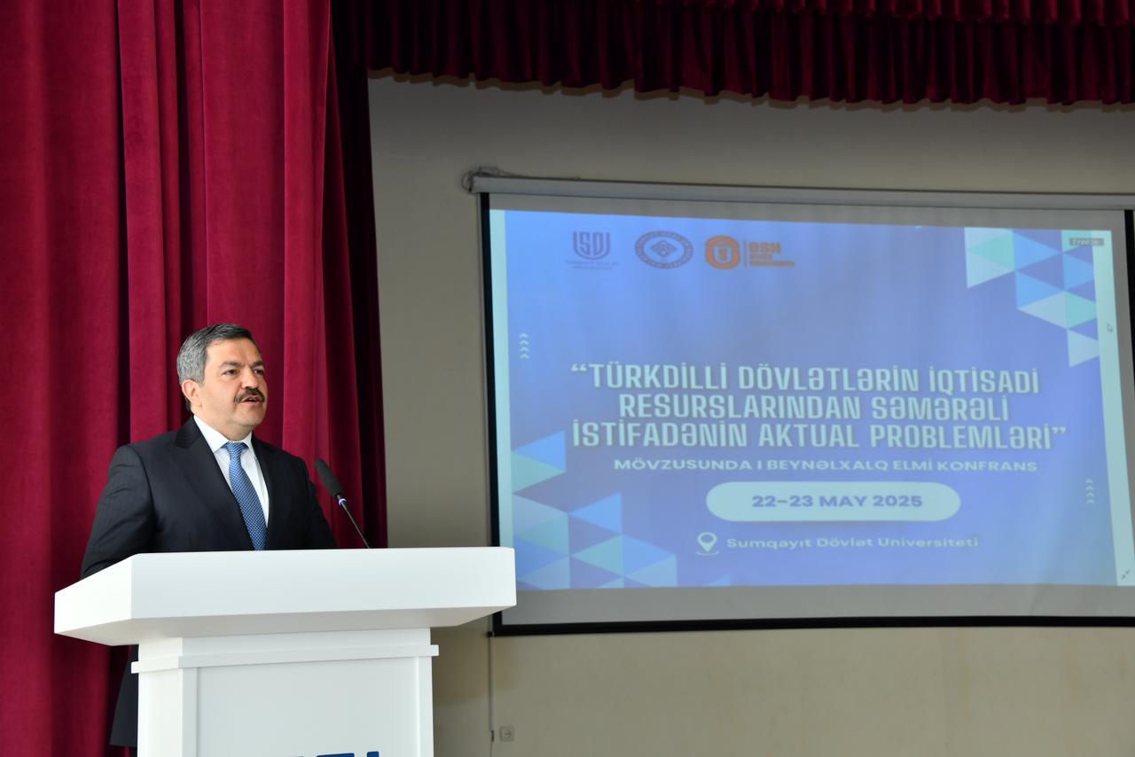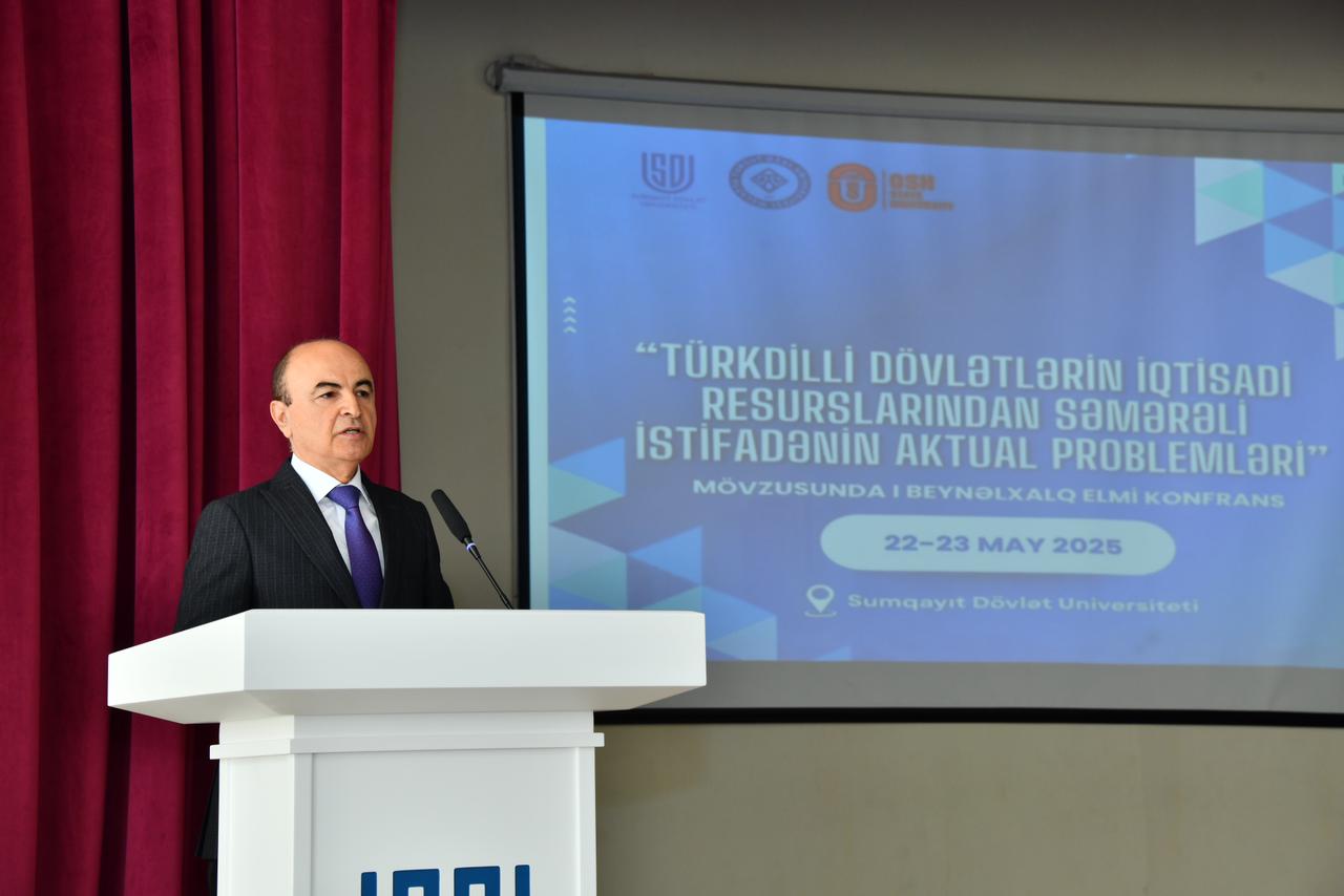 22 may 2025-ci il tarixində Sumqayıt Dövlət Universiteti (SDU), Malatya Turqut Özal Universiteti və Oş Dövlət Universitetinin birgə təşkilatçılığı ilə Sumqayıt Dövlət Universitetində “Türkdilli dövlətlərin iqtisadi resurslarından səmərəli istifadənin aktual problemləri” mövzusunda I Beynəlxalq elmi konfrans öz işinə başlayıb. Tədbir Ulu Öndər Heydər Əliyevin SDU-nun foyesində ucaldılmış büstü önünə gül dəstələrinin qoyulması ilə başlayıb. Ümummilli liderin əziz xatirəsi ehtiramla yad edilib. SDU-nun böyük akt zalında baş tutan konfransda Azərbaycan Respublikasının Dövlət Himni səsləndirilib və şəhidlərin əziz xatirəsi bir dəqiqəlik sükutla yad edilib.