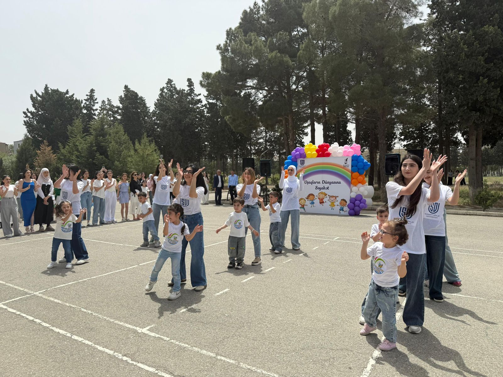 Mayın 30-da Sumqayıt Dövlət Universitetinin (SDU) həyətində 1 İyun-Uşaqların Beynəlxalq Müdafiəsi Günü münasibətilə Filologiya fakültəsinin Məktəbəqədər təhsil ixtisasının tələbələri ilə Sumqayıt şəhərində fəaliyyət göstərən 5, 11, 28 və 39 saylı dövlət və özəl körpələr evi-uşaq bağçalarının birgə təşkilatçılığı ilə “Uşaqların dünyasına səyahət” adlı tədbir keçirilib. Tədbirdə Dövlət Himni səsləndirilib. Torpaqlarımızın azadlığı uğrunda canlarını qurban vermiş şəhidlərimizin əziz xatirəsi bir dəqiqəlik sükutla yad edilib.