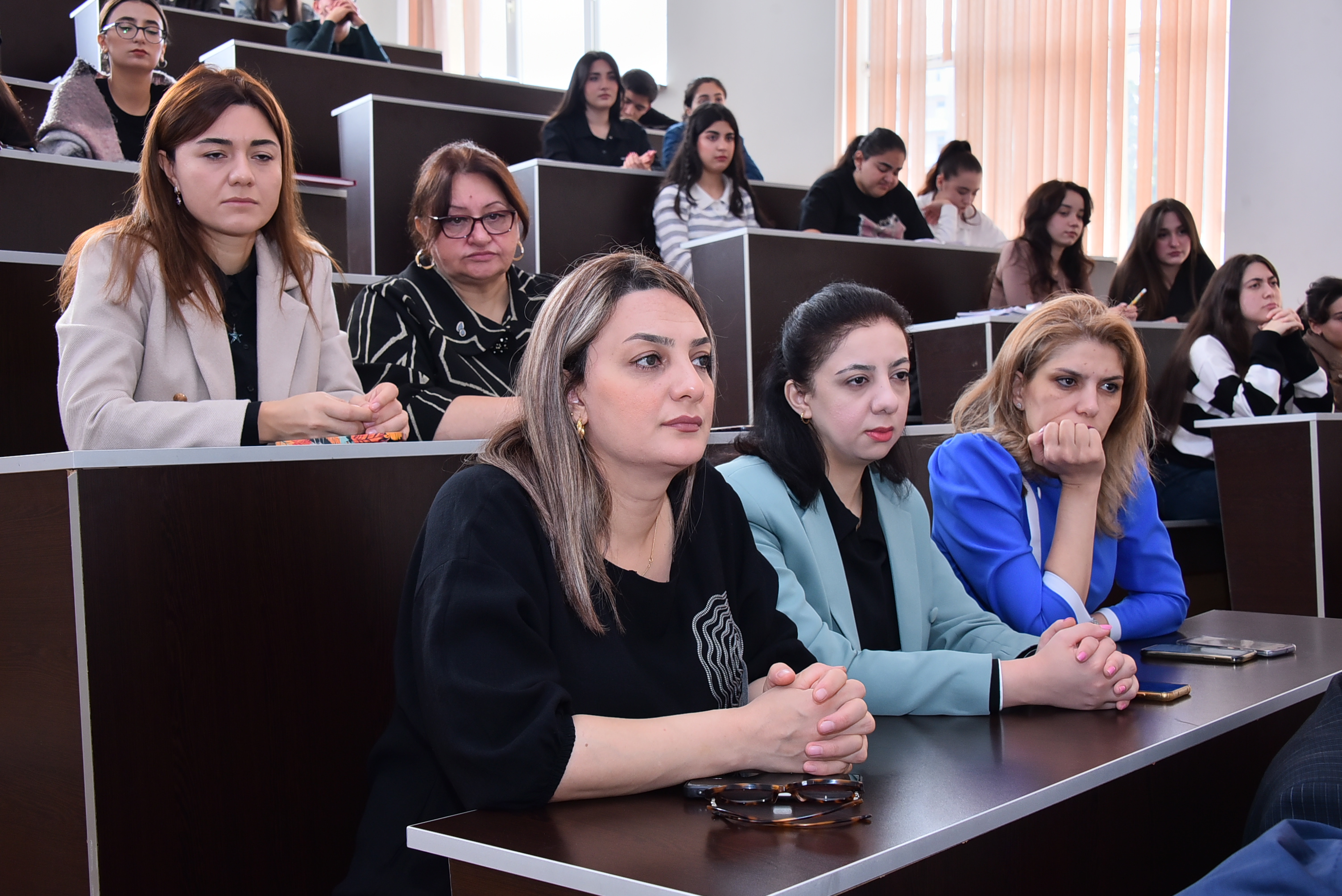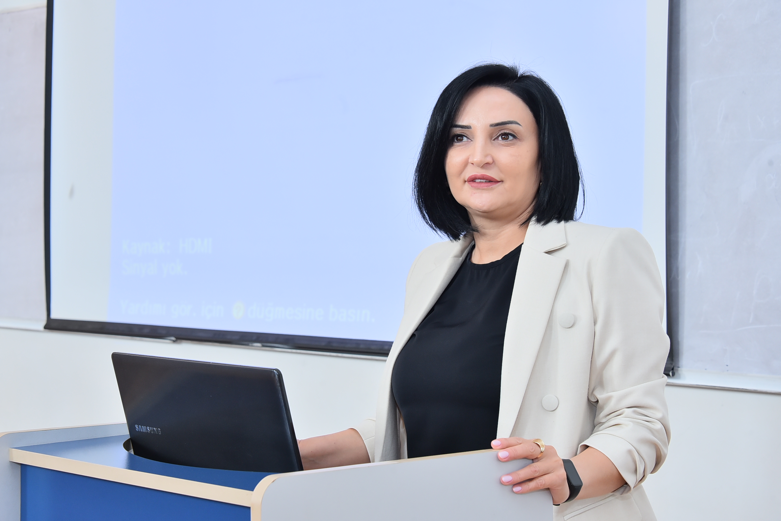 Oktyabrın 24-də Riyaziyyat fakültəsinin Riyazi analiz və diferensial tənliklər kafedrasının təşkilatçılığı ilə “Qazaxıstan təcrübəsi: elmdə və təhsildə əməkdaşlığa doğru” mövzusunda seminar keçirilib. Tədbir beynəlxalq elmi əməkdaşlıq əlaqələrinin genişləndirilməsi, qabaqcıl təcrübələrin öyrənilməsi və gələcək birgə layihələr üçün perspektivlərin müəyyənləşdirilməsi məqsədilə təşkil olunub. Seminarı Riyaziyyat fakültəsinin dekanı, dosent Xalidə Həsənova açaraq, akademik heyət və tələbələr üçün yaradılan yüksək şəraitə görə universitet rəhbərliyinə dərin təşəkkürünü bildirib. O, dosent Xəyalə Seyfullayevanın səfərinin fakültə üçün mühüm əhəmiyyət daşıdığını vurğulayaraq qeyd edib ki, bu kimi beynəlxalq səfərlər fakültənin elmi potensialının güclənməsinə, müəllim və tədqiqatçıların beynəlxalq akademik mühitə inteqrasiyasına və elmi əməkdaşlıqların genişlənməsinə mühüm töhfə verir. Sonra Riyazi analiz və diferensial tənliklər kafedrasının müdiri, dosent Xəyalə Seyfullayeva iştirakçıları salamlayıb və tədbirin əhəmiyyətindən danışıb. O, yaxın günlərdə Qazaxıstana etdiyi işgüzar səfər barədə məlumat verib. Səfər çərçivəsində Qazaxıstanın bir sıra aparıcı ali təhsil müəssisələrində keçirilən görüşlər, elmi müzakirələr və beynəlxalq tədbirlərdə iştirak etdiyini qeyd edib. O, Qazaxıstan ali məktəblərində tətbiq olunan müasir tədris metodları, elmi-tədqiqat fəaliyyətinin təşkili, doktorantura və magistratura pillələrində beynəlxalq əməkdaşlıq təcrübəsi barədə danışıb. Seminarda həmçinin Beynəlxalq Əməkdaşlıq və Strateji Layihələr şöbəsinin müdiri Aysel Eminova çıxış edərək universitetin beynəlxalq əməkdaşlıq istiqamətləri haqqında ümumi məlumat verib. O, xarici ali təhsil müəssisələri ilə əməkdaşlıq mexanizmləri, birgə layihə və qrant proqramları, eləcə də Qazaxıstan universitetləri ilə əlaqələrin strateji əhəmiyyəti barədə danışıb.