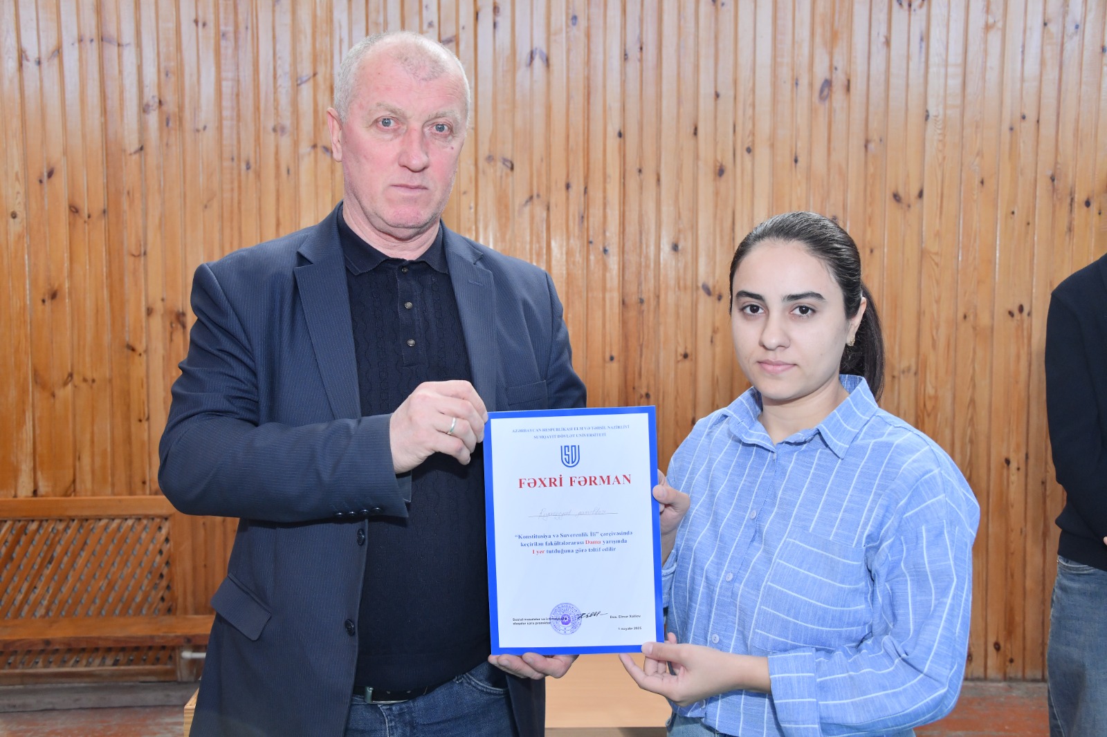 Sumqayıt Dövlət Universitetində “Konstitusiya və Suverenlik İli”nə həsr olunmuş fakültələrarası dama yarışı təşkil olunub. Yarış universitetin Tələbə Həmkarlar İttifaqı Komitəsi və İdman Klubunun təşkilatçılığı ilə keçirilib. Tədbirin açılışında universitetin Sosial məsələlər və ictimaiyyətlə əlaqələr üzrə prorektoru, dosent Elmar Xəlilov çıxış edərək iştirakçıları salamlayıb, idmanın gənclər arasında sağlam həyat tərzinin formalaşmasında və asudə vaxtın səmərəli keçirilməsində mühüm rol oynadığını vurğulayıb. Yarışda Sumqayıt Dövlət Universitetinin və Sumqayıt Dövlət Texniki Kollecinin tələbələrindən ibarət 7 komanda birincilik uğrunda mübarizə aparıb. Gərgin və maraqlı keçən yarışın nəticələrinə əsasən universitetin Riyaziyyat fakültəsi I yerə, Təbiət elmləri fakültəsi II yerə, Filologiya fakültəsinin komandası isə III yerə layiq görülüb. Qaliblər sertifikatla təltif olunublar.