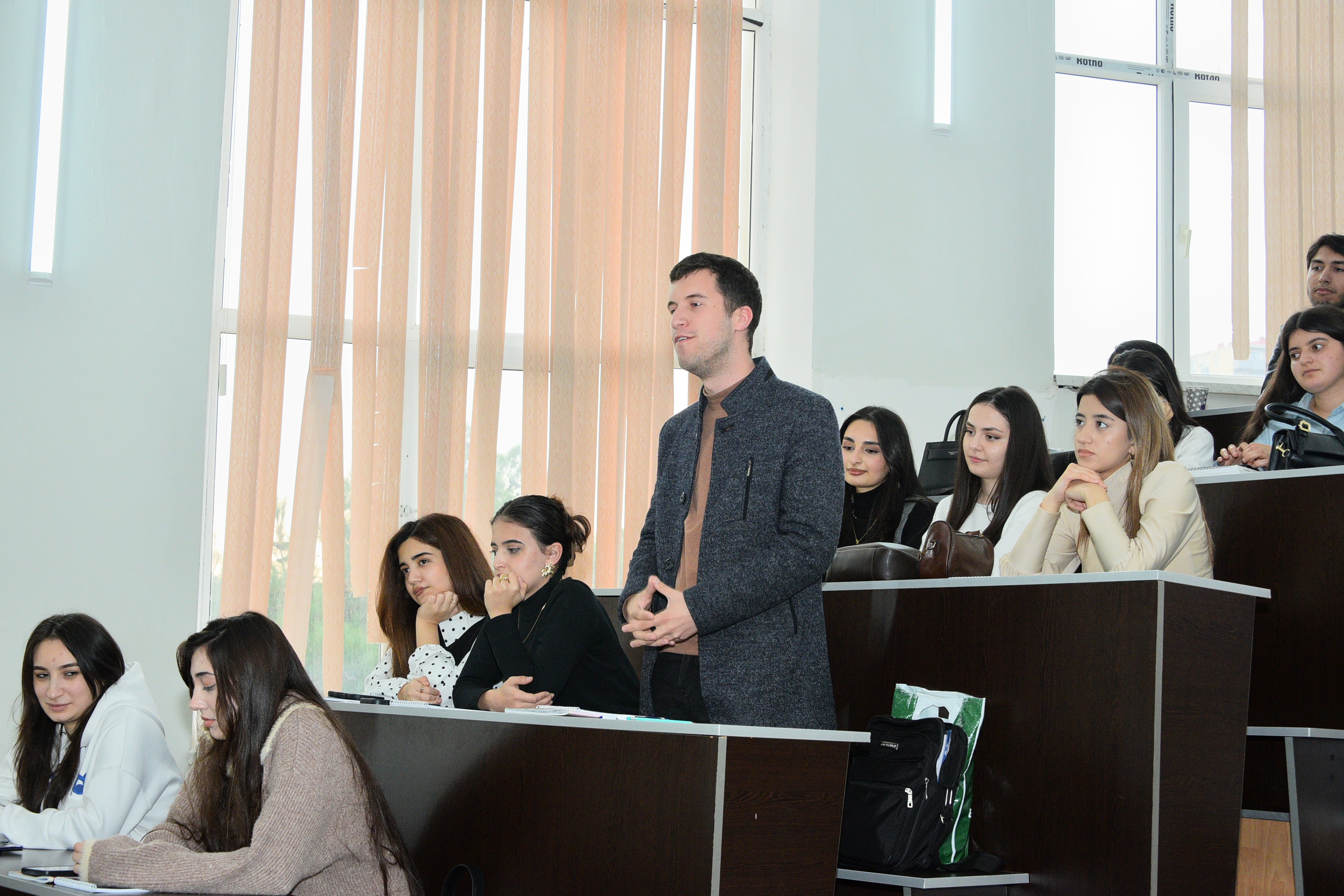 Noyabrın 14-də Sumqayıt Dövlət Universitetində Azərbaycan Respublikasının Əmək və Əhalinin Sosial Müdafiəsi Nazirliyinin (ƏƏSMN) əməkdaşlarının iştirakı ilə “Dövlət qulluğunun üstünlükləri, dəyişikliklər və perspektiv planlar” mövzusunda maarifləndirici seminar təşkil olunub. Tədbiri Karyera və Məzunlarla İş Mərkəzinin direktoru Anar Dünyamalıyev açaraq qonaqları salamlayıb və seminarın məqsədi barədə iştirakçılara məlumat verib. O, tədbirin gənclərdə dövlət qulluğuna marağın artırılması, tələbələrin bu sahə ilə bağlı bilgilərlə təmin olunması və onların gələcək karyera planlaşdırmasına dəstək göstərilməsi baxımından mühüm əhəmiyyət daşıdığını vurğulayıb. Sonra Əmək və Əhalinin Sosial Müdafiəsi Nazirliyinin baş məsləhətçisi Həsənağa Hüseynov çıxış edərək ölkəmizdə dövlət qulluğu sisteminin hüquqi bazası, dövlət qulluqçuları üçün mövcud təminatlar, qəbul prosedurları, imtahan və seçim mexanizmləri, müsabiqə mərhələləri barədə məlumat verib. O, dövlət qulluğuna qəbul prosesinin şəffaflıq və bərabər imkanlar prinsipləri əsasında həyata keçirildiyini bildirib, gənclərin dövlət idarəçiliyində artan rolundan danışıb. Seminar interaktiv şəkildə davam edib, tələbələrin çoxsaylı sualları cavablandırılıb. Gənclərə dövlət qulluğuna hazırlıq, imtahan strategiyaları və karyera inkişafı ilə bağlı bir sıra tövsiyələr verilib.