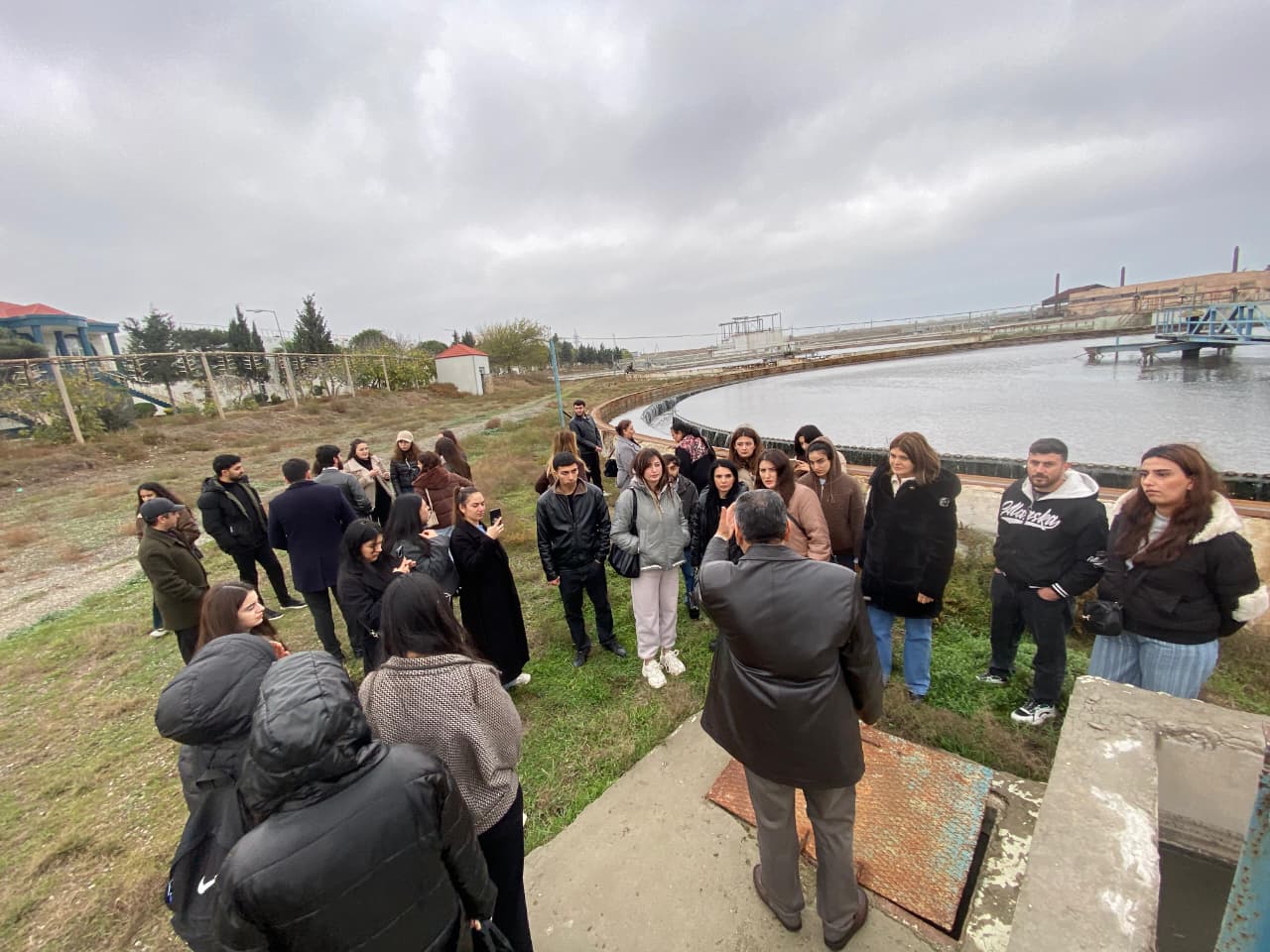 Mühəndislik fakültəsinin Kimya mühəndisliyi və ekologiya kafedrasının müdiri, dosent Tünzalə Babayevanın təşkilatçılığı ilə bir qrup tələbə praktik yönümlü tədris çərçivəsində maarifləndirici səfərdə iştirak ediblər. Səfər Azərbaycan Dövlət Su Ehtiyatları Agentliyinin tabeliyində fəaliyyət göstərən Hövsan Aerasiya Stansiyasına və Su və Meliorasiya Elmi Tədqiqat İnstitutunun nəzdindəki Təlim və İnnovasiyalar Mərkəzinə təşkil olunub. Dərs proqramına uyğun olaraq mühazirə birbaşa Hövsan Aerasiya Stansiyasında keçirilib. Tələbələr aerasiya sistemlərinin iş prinsiplərini yerində izləyib, stansiya mütəxəssislərinin təqdimatlarında iştirak edərək suyun təmizlənməsi prosesləri barədə praktiki biliklər əldə ediblər. Səfər Təlim və İnnovasiyalar Mərkəzində davam edib. Burada müasir təlim metodları, innovativ texnoloji yanaşmalar və peşəkar bacarıqların inkişafına yönəlmiş fəaliyyətlər tələbələrə ətraflı şəkildə təqdim olunub. Əyani dərs tələbələrin nəzəri biliklərini real istehsalat mühiti ilə əlaqələndirməsinə, su infrastrukturu üzrə texnoloji düşüncəsinin formalaşmasına və fənnin daha səmərəli mənimsənilməsinə mühüm töhfə verib.