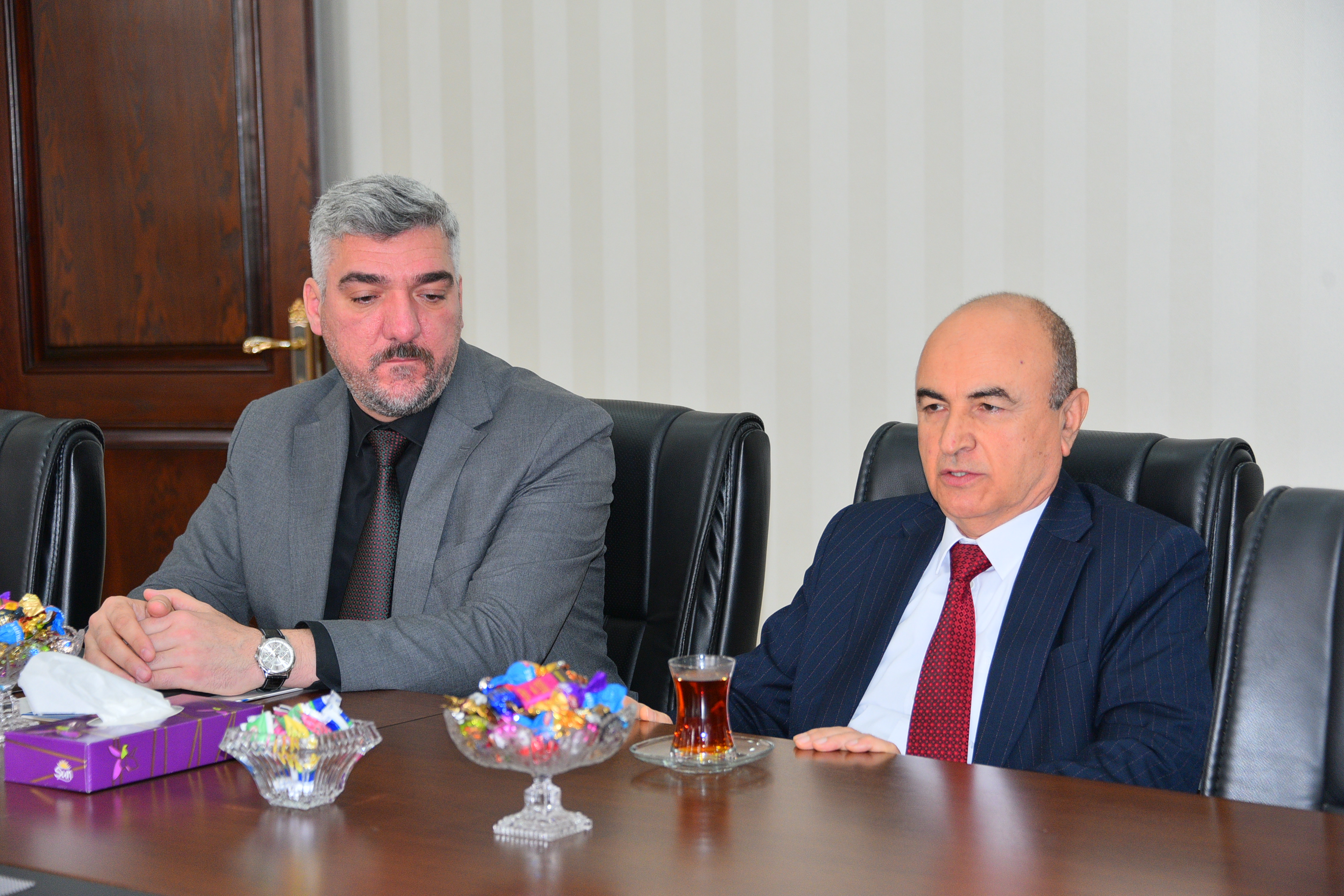 Dekabrın 24-də Azərbaycan Respublikası Sahibkarlar (İşəgötürənlər) Təşkilatları Milli Konfederasiyası (ASK) ilə Sumqayıt Dövlət Universiteti (SDU) arasında əməkdaşlıq əlaqələrinin qurulması və inkişaf etdirilməsi məqsədilə işgüzar görüş keçirilib. Görüşdə universitetin rektoru v.i.e., AMEA-nın müxbir üzvü, professor Əminağa Sadıqov qonaqları salamlayaraq SDU-nun inkişaf strategiyası və qarşıya qoyulan hədəflər barədə məlumat verib. Bildirib ki, SDU-nun əsas məqsədi müasir çağırışlara cavab verən, rəqabətqabiliyyətli kadrlar yetişdirən və elmi-tədqiqat fəaliyyəti ilə seçilən yeni nəsil ali təhsil müəssisəsinə çevrilməkdir. Əminağa Sadıqov bu hədəflərə nail olmaq üçün sənaye və biznes strukturları ilə sıx əməkdaşlığın mühüm əhəmiyyət daşıdığını vurğulayıb. Qeyd edib ki, universitet-sənaye əlaqələrinin gücləndirilməsi tədris proqramlarının əmək bazarının tələblərinə uyğunlaşdırılmasına, tələbələrin praktik bilik və bacarıqlarının artırılmasına, eləcə də birgə elmi-tədqiqat və innovasiya layihələrinin reallaşdırılmasına geniş imkanlar yaradır. O, həmçinin son dövrlərdə universitetdə bu istiqamətdə atılan konkret addımları, imzalanan əməkdaşlıq sazişlərini, istehsalat təcrübələrinin təşkili, birgə layihələr və kadr hazırlığı sahəsində əldə olunan müsbət nəticələri diqqətə çatdırıb. Əminliklə ifadə edib ki, ASK ilə qurulacaq əməkdaşlıq universitetin sənaye ilə inteqrasiyasını daha da gücləndirəcək, ölkənin sosial-iqtisadi inkişafına töhfə verərək ixtisaslı mütəxəssislərin hazırlanmasına xidmət edəcək. Universitet kollektivi ilə keçirilən görüşdən məmnunluğunu ifadə edən Azərbaycan Respublikası Sahibkarlar (İşəgötürənlər) Təşkilatları Milli Konfederasiyasının Baş katibi Ziya Hacılı təmsil etdiyi qurum tərəfindən həyata keçirilən layihələr və təşəbbüslər barədə məlumat verib. Qeyd edib ki, konfederasiya sahibkarlıq mühitinin inkişafı, işəgötürənlərlə təhsil müəssisələri arasında əlaqələrin möhkəmləndirilməsi və gənc kadrların əmək bazarına hazırlanması istiqamətində ardıcıl və məqsədyönlü fəaliyyət həyata keçirir. Ziya Hacılı xüsusilə regionlarda fəaliyyət göstərən ali təhsil müəssisələrinin tələbələrinin ölkənin biznes subyektləri ilə birbaşa ünsiyyət qurmasının, istehsalat müəssisələrində real praktik təcrübə keçməsinin və müxtəlif birgə layihələrdə fəal iştirak etməsinin ASK-nın əsas prioritetləri sırasında olduğunu vurğulayıb. O, belə təşəbbüslərin sahibkarlığın inkişafı, yeni ideyaların reallaşdırılması və insan kapitalının gücləndirilməsi baxımından geniş potensial imkanlara malik olduğu diqqətə çatdırıb. Görüş çərçivəsində aparılan müzakirələrin yekununda tərəflər arasında əməkdaşlıq əlaqələrinin qurulması və mərhələli şəkildə inkişaf etdirilməsi məqsədilə qarşılıqlı razılıq əldə olunub. Sonra tərəflər arasında Anlaşma Memorandumu imzalanıb.