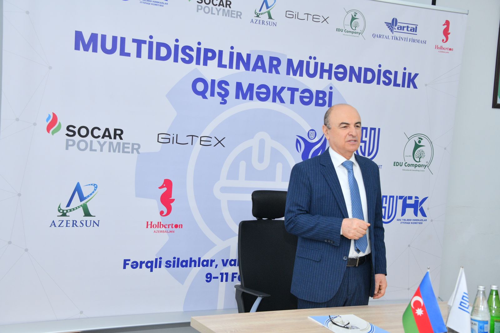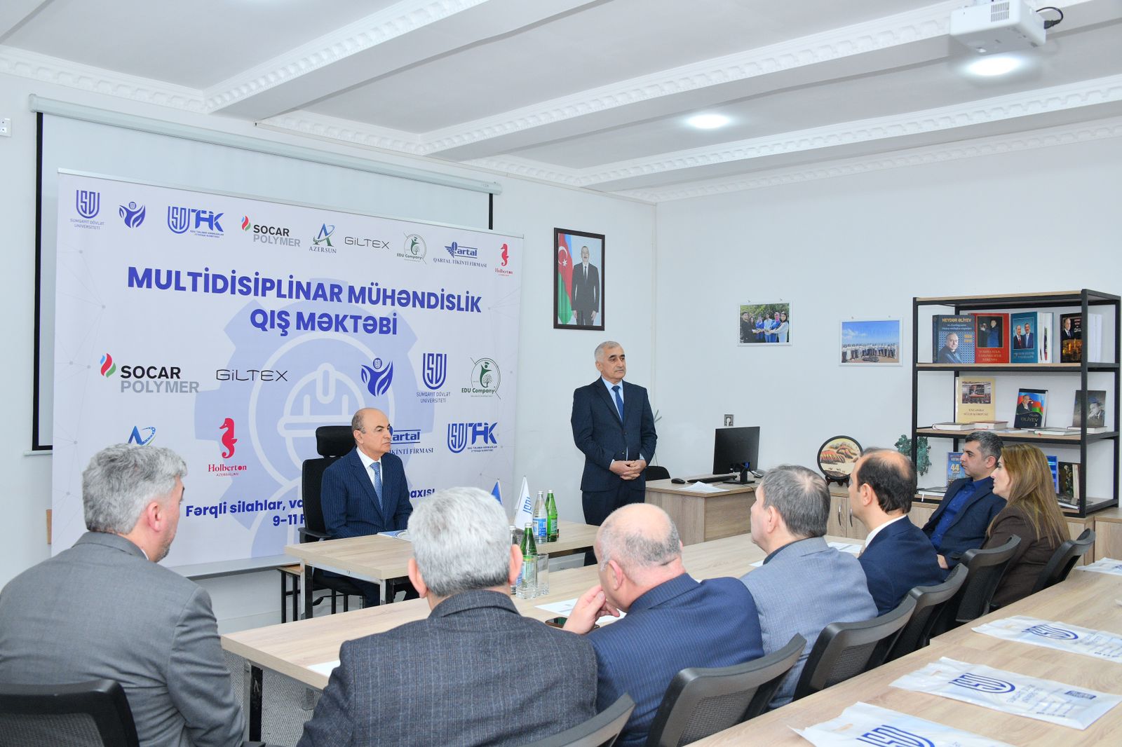Açılış mərasimində SDU-nun rektoru, v.i.e., AMEA-nın müxbir üzvü Əminağa Sadıqov çıxış edərək Multidisiplinar Mühəndislik Qış Məktəbinin mühəndislik ixtisasında təhsil alan tələbələr üçün mühüm akademik və praktik platforma olduğunu bildirib. O qeyd edib ki, müasir dövrdə mühəndis kadrların hazırlanmasında multidisiplinar yanaşma xüsusi əhəmiyyət kəsb edir və bu cür proqramlar tələbələrin yalnız nəzəri biliklərini deyil, eyni zamanda praktiki bacarıqlarını, analitik düşünmə və problem həll etmə qabiliyyətlərini inkişaf etdirir. Əminağa Sadıqov vurğulayıb ki, Qış Məktəbi tələbələrin müxtəlif mühəndislik sahələrinin kəsişməsində yaranan real problemlərə yanaşma bacarıqlarını formalaşdırır, onları sənaye mühiti və əmək bazarının aktual tələbləri ilə yaxından tanış edir. Ə.Sadıqov universitetdə tələbələrin peşəkar inkişafına yönəlmiş innovativ təşəbbüslərin daim dəstəkləndiyini qeyd edərək iştirakçılara uğurlar arzulayıb. Daha sonra SDU-nun Karyera və Məzunlarla İş Mərkəzinin direktoru Anar Dünyamalıyev çıxış edərək bildirib ki, Qış Məktəbinin əsas məqsədi tələbələrin əmək bazarına hazırlıq səviyyəsini yüksəltmək, onlarda multidisiplinar düşüncə tərzini formalaşdırmaq və real sektorun tələblərinə uyğun bacarıqlar qazandırmaqdır. O vurğulayıb ki, layihə əsaslı öyrənmə və komanda işi formatında keçirilən təlimlər tələbələrin kommunikasiya və layihə idarəetmə bacarıqlarının inkişafına mühüm töhfə verir. Mühəndislik fakültəsinin dekanı, dosent Ulduz Ağayev isə çıxışında mühəndislik sahəsində uğur qazanmaq üçün yalnız ixtisas biliklərinin deyil, analitik düşüncə, çevik yanaşma və müxtəlif sahələr arasında əlaqə qurmaq bacarığının da vacibliyini diqqətə çatdırıb. Proqram çərçivəsində təlimlərə start verilib. Qış məktəbinin ilk təlimi Azərbaycan Su Ehtiyatları Agentliyinin Baş məsləhətçi mühəndisi Fuad Cavadzadə tərəfindən “Proqressiv mühəndislik və suların strateji idarə olunmasında multidisiplinar həllər” mövzusunda keçirilib. Təlim zamanı spiker müasir mühəndisliyin qarşısında dayanan aktual çağırışlara toxunaraq su ehtiyatlarının strateji əhəmiyyətini vurğulayıb, bu sahədə innovativ yanaşmaların və müxtəlif mühəndislik sahələri üzrə biliklərin inteqrasiyasının zəruriliyini qeyd edib. Qeyd edək ki, Multidisiplinar Mühəndislik Qış Məktəbinin təşkilində “SOCAR Polymer”, “GİLTEX”, “Azərsun” şirkətləri, “Qartal” tikinti firması, “EDU Company”, “Holberton School”, eləcə də Sumqayıt Dövlət Universitetinin Tələbə Həmkarlar İttifaqı Komitəsi tərəfdaş və sponsor kimi iştirak edərək layihənin uğurla həyata keçirilməsinə dəstək göstəriblər. Bu əməkdaşlıq təlimlərin praktik, real sektor yönümlü və yüksək keyfiyyətlə təşkil olunmasına imkan yaradıb.
