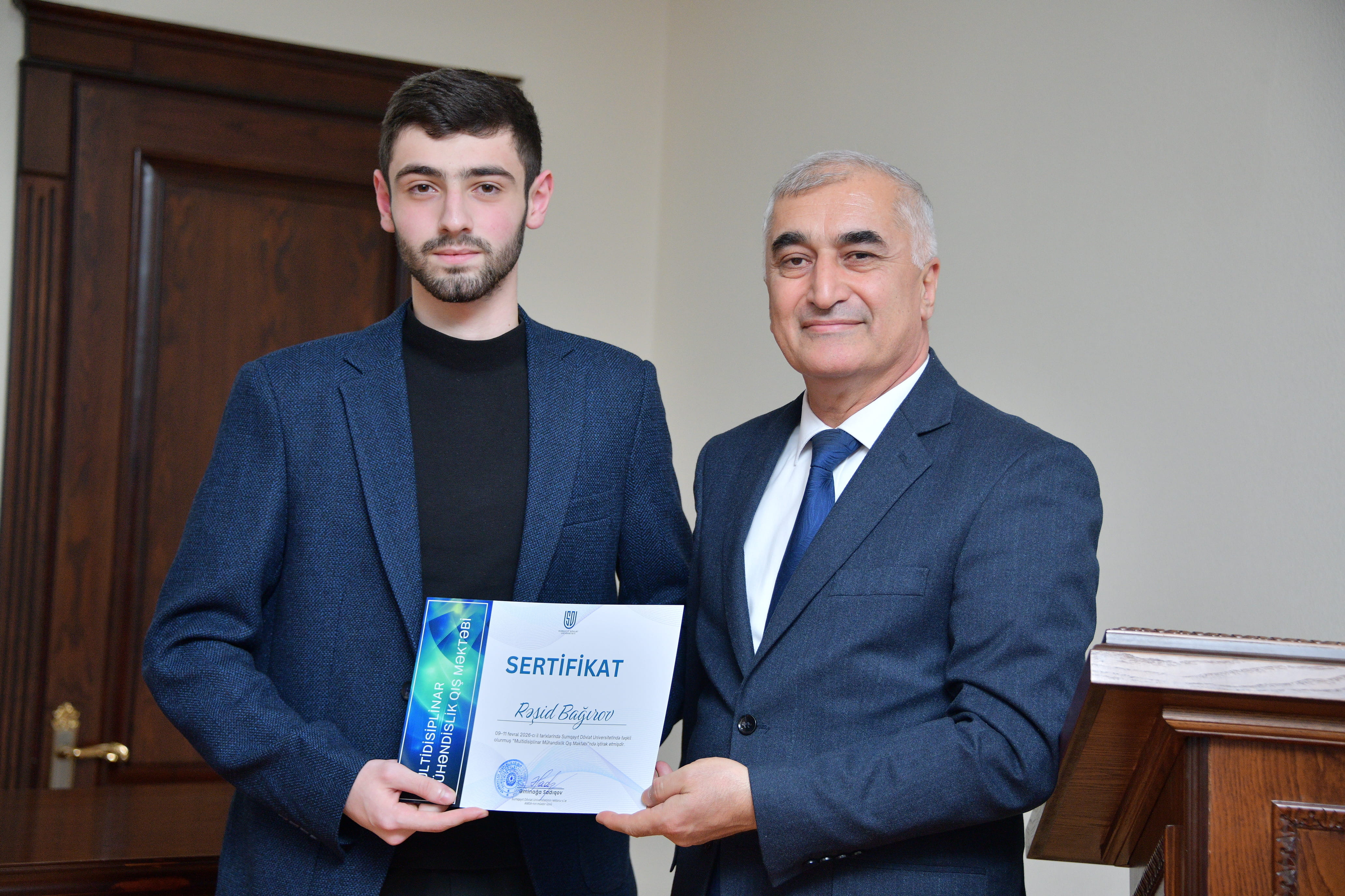 Sumqayıt Dövlət Universitetində (SDU) keçirilən Multidisiplinar Mühəndislik Qış Məktəbi uğurla yekunlaşıb. Elm və sənaye arasında sistemli əməkdaşlığın gücləndirilməsini, nəzəri biliklərlə praktik bacarıqların inteqrasiyasını hədəfləyən Qış Məktəbi mühəndislik ixtisasında təhsil alan tələbələr üçün strateji əhəmiyyətli akademik platforma kimi dəyərləndirilir. Bağlanış mərasimində çıxış edən SDU-nun rektoru, v.i.e., AMEA-nın müxbir üzvü Əminağa Sadıqov Qış Məktəbinin SDU-nun inkişaf strategiyasının mühüm istiqamətlərindən biri olduğunu bildirib. O vurğulayıb ki, müasir dövrdə mühəndis kadrların hazırlanması yalnız ixtisas biliklərinin ötürülməsi ilə məhdudlaşmır, eyni zamanda multidisiplinar düşüncə, analitik təhlil bacarığı, innovativ yanaşma və real sektorla effektiv əməkdaşlıq modelinin formalaşdırılmasını zəruri edir. Əminağa Sadıqov qeyd edib ki, SDU-da universitet-sənaye əməkdaşlığı prioritet istiqamət kimi müəyyənləşdirilib və bu model tələbələrin əmək bazarına hazır, rəqabətqabiliyyətli mütəxəssis kimi formalaşmasına xidmət edir. O, ölkədə həyata keçirilən struktur islahatların, xüsusilə Prezident İlham Əliyevin rəhbərliyi ilə icra olunan rəqəmsal inkişaf strategiyasının mühəndislik təhsilinə yeni çağırışlar müəyyən etdiyini diqqətə çatdırıb. Süni intellekt texnologiyalarının tətbiqi, data əsaslı idarəetmə sistemlərinin qurulması və rəqəmsal transformasiya prosesləri mühəndis kadrların hazırlığında keyfiyyətcə yeni mərhələnin başlanğıcını təşkil edir. Əminağa Sadıqov çıxışında vurğulayıb ki, müasir mühəndis yalnız texniki biliklərə malik mütəxəssis deyil, həm də strateji düşünən, texnoloji yenilikləri tətbiq etməyi bacaran və qlobal çağırışlara adekvat cavab verən peşəkardır. O, 44 günlük Vətən müharibəsində qazanılmış tarixi Qələbənin yüksək texnoloji hazırlıq, milli birlik və güclü dövlətçilik modelinin nəticəsi olduğunu qeyd edərək gəncləri bilik və bacarıqlarını davamlı şəkildə inkişaf etdirməyə çağırıb.