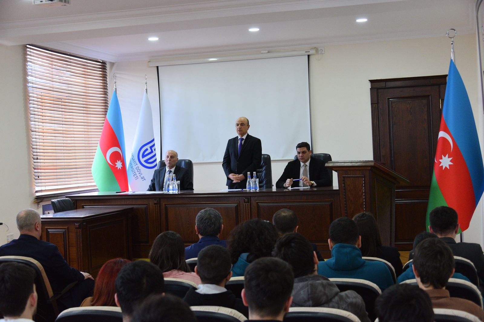 Tədbiri SDU-nun rektoru v.i.e, AMEA-nın müxbir üzvü Əminağa Sadıqov açaraq qonaqları və tələbələri salamlayıb. Ə.Sadıqov çıxışında tədbirin universitetdə keçirilən silsilə maarifləndirici görüşlər sırasında xüsusi əhəmiyyət daşıdığını bildirib. O qeyd edib ki, dövlət siyasətinin prioritet istiqamətlərindən biri sağlam, vətənpərvər və yüksək biliklərə malik gənclərin yetişdirilməsidir. Ə.Sadıqov Azərbaycan Respublikasının Prezidenti, Silahlı Qüvvələrin Ali Baş Komandanı İlham Əliyevin rəhbərliyi ilə Qarabağın azad olunmasında Azərbaycan gənclərinin göstərdiyi qəhrəmanlıqdan bəhs edərək vurğulayıb ki, qalib dövlət olaraq Azərbaycanın beynəlxalq nüfuzu artıb və bu reallıq gənclərin üzərinə daha böyük məsuliyyət qoyur.