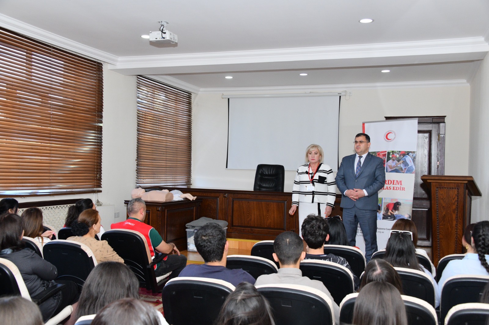 Aprelin 26-da Sumqayıt Dövlət Universitetində Qızıl Aypara Cəmiyyətinin Sumqayıt şəhər bölməsi tərəfindən ilkin tibbi yardım mövzusunda maarifləndirici tədbir keçirildi.