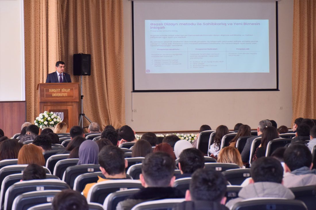 Fevralın 19-da Sumqayıt Dövlət Universitetində “Əsaslı Dizayn metodu ilə Sahibkarlıq və Yeni Biznesin İnkişafı” proqramı çərçivəsində infosessiya keçirildi.