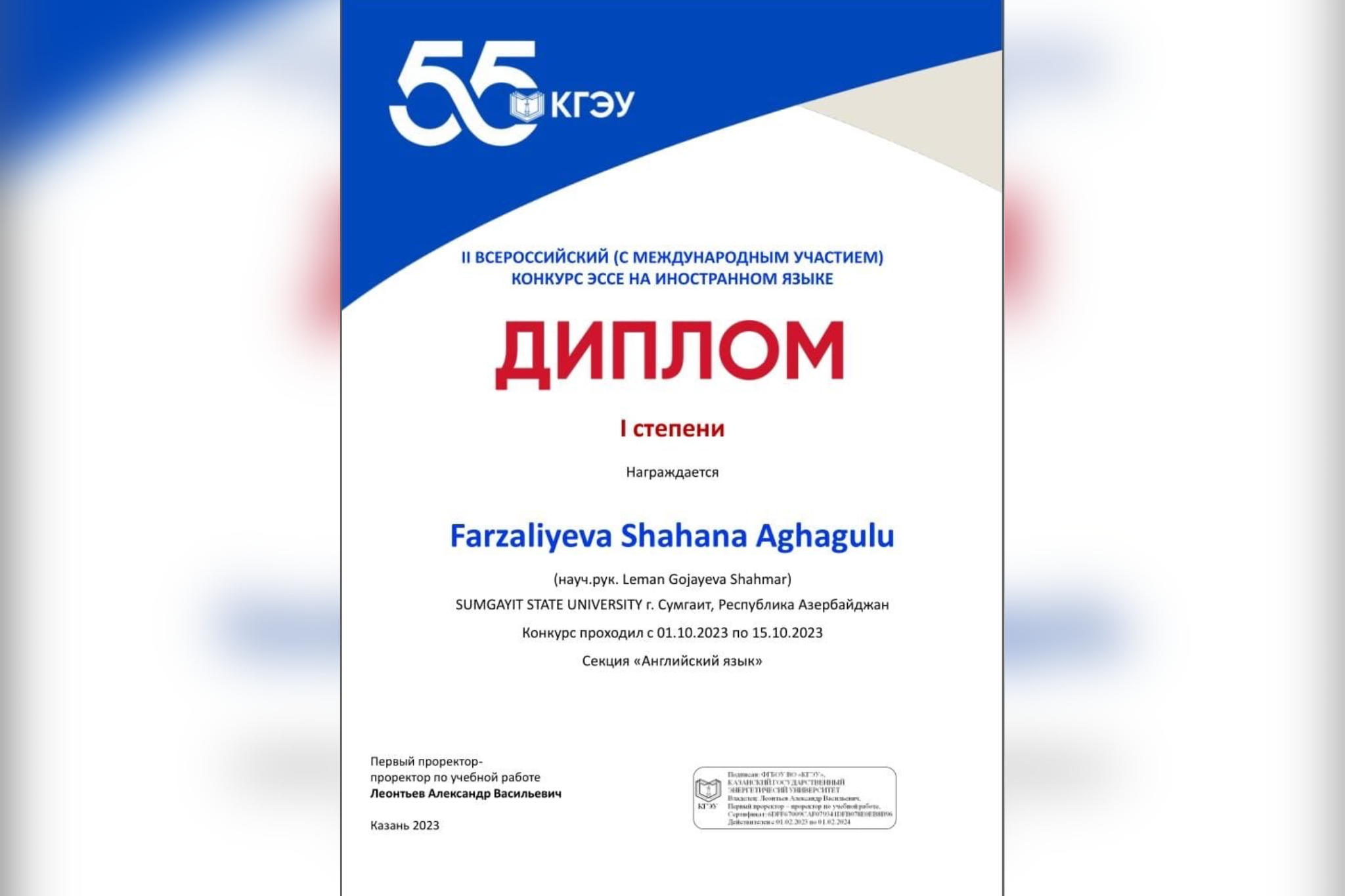 Cari ilin oktyabr-noyabr aylarında Kazan Dövlət Energetika Universitetinin Xarici Dillər Kafedrası tərəfindən universitetin 55 illiyinə həsr olunmuş “Gələcəyin universiteti necə olmalıdır... Davamı