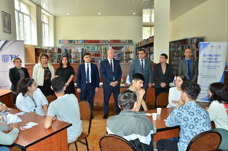 Mayın 6-da Sumqayıt Dövlət Universitetinin Elmi kitabxanasında Tələbə HİK və Tələbə Gənclər Təşkilatının birgə təşkilatçılığı ilə Ulu Öndər Heydər Əliyevin anadan olmasının 100 illi... Davamı