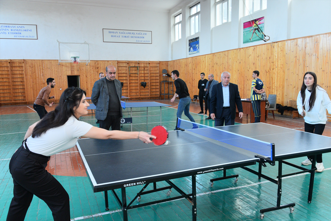 Universitetin idman bazasında standartlara uyğun böyük idman zalı, qılıncoynatma zalı, mini-futbol meydançası, açıq havada şahmat lövhəsi, voleybol meydançası, stadion, badminton meydançası, tennis üzrə kort, sadə gimnastik qurğular mövcuddur.