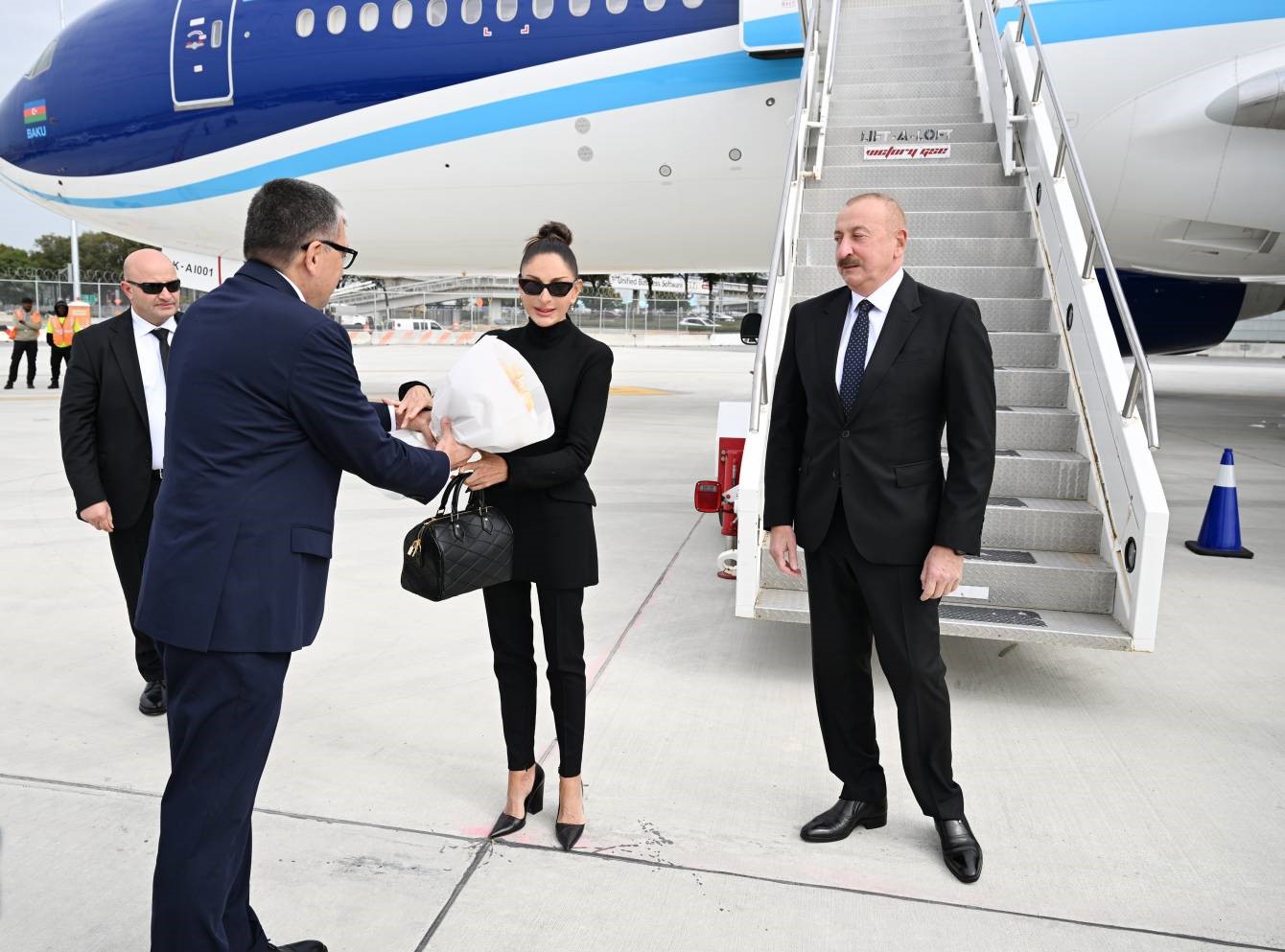 President Ilham Aliyev and First Lady Mehriban Aliyeva were welcomed by officials at New York’s John F. Kennedy International Airport.