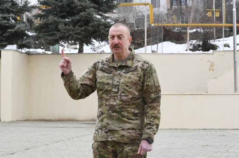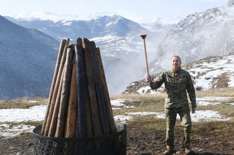 President of the Republic of Azerbaijan Ilham Aliyev, First Lady Mehriban Aliyeva, and their daughter Leyla Aliyeva have lit the holiday bonfire on Jidir Duzu, Shusha.